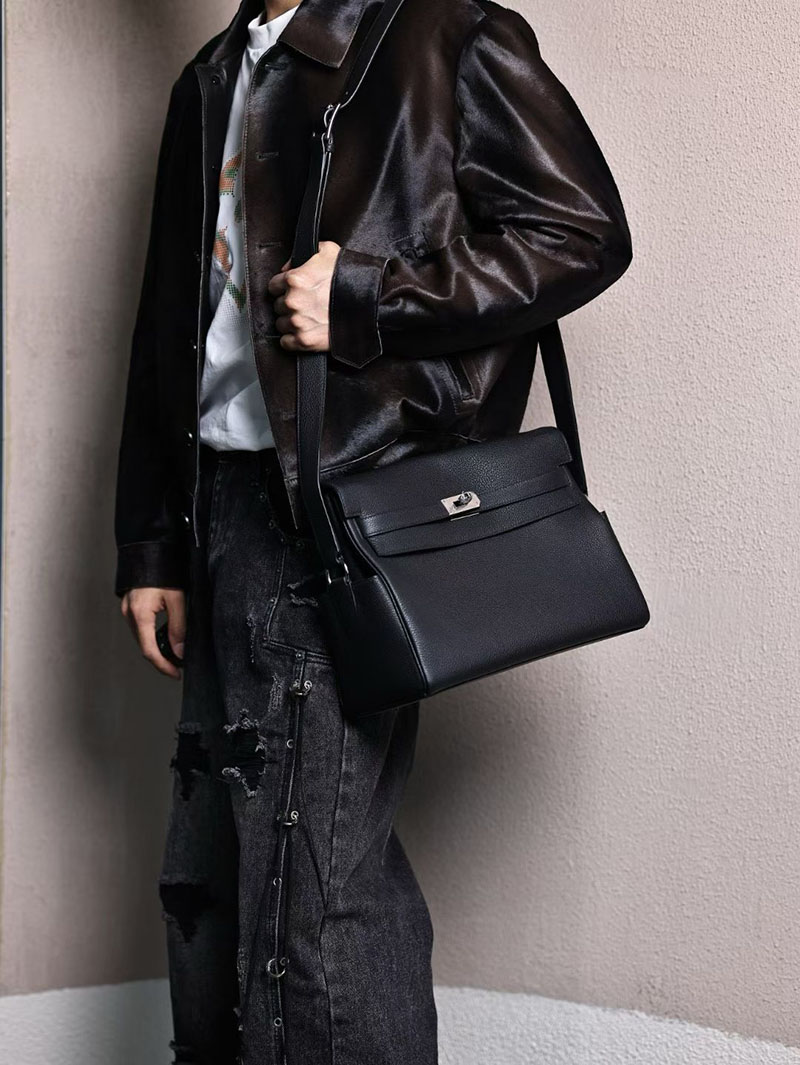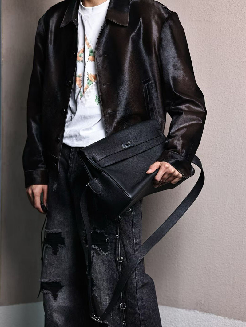 エルメス ショルダーバッグ メンズ HERMES ケリーメッセンジャーGM 黒 ブラック トゴ シルバー金具 2627545 エルメス専門店 おすすめ