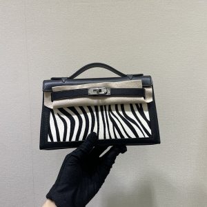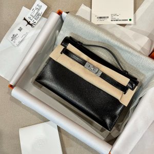 エルメスコピー ミニケリー 定価 HERMES ポシェットケリー 黒 ブラック ボックスカーフ シルバー金具 2524084