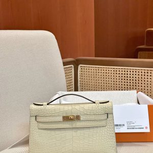 エルメス アウトレット 店舗 HERMES ポシェットケリー ヴァニラ クロコダイル アリゲーターマット ゴールド金具 2520858 ミニケリー 定価