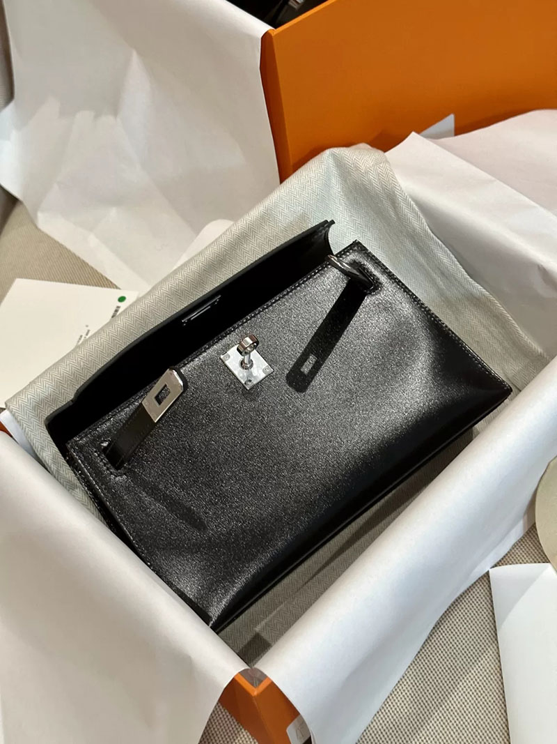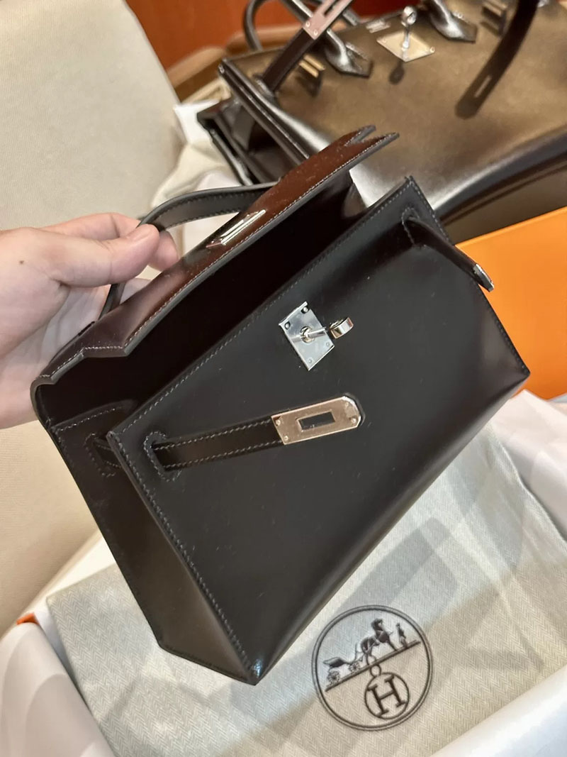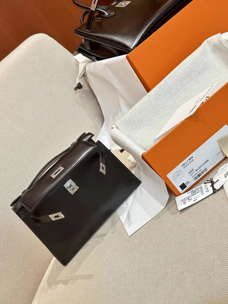 エルメス アウトレット 店舗 HERMES ポシェットケリー 黒 ブラック ボックスカーフ シルバー金具 2520861 エルメス ミニケリー 定価