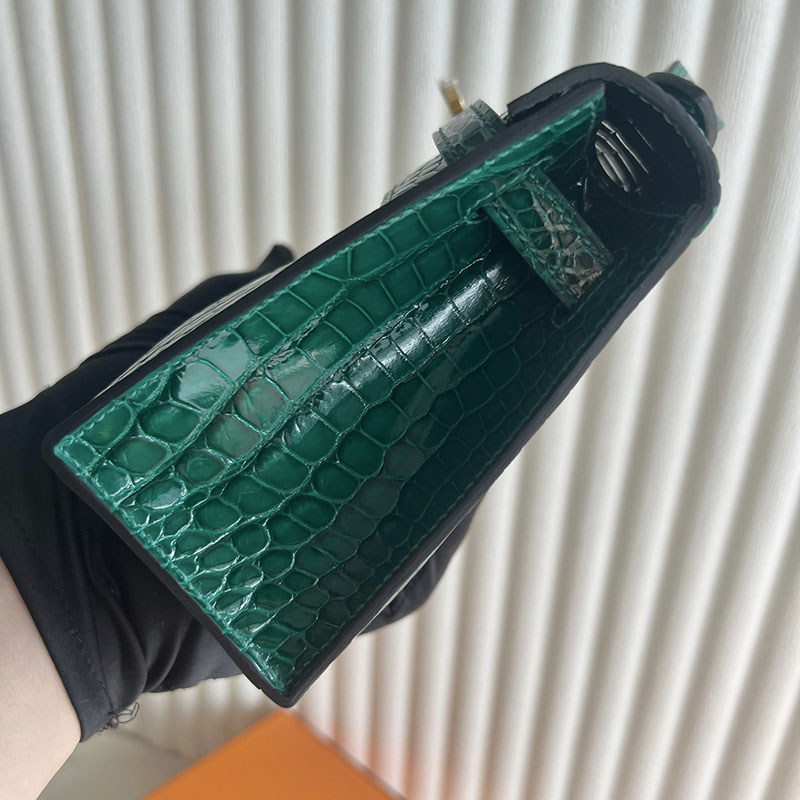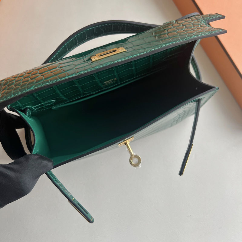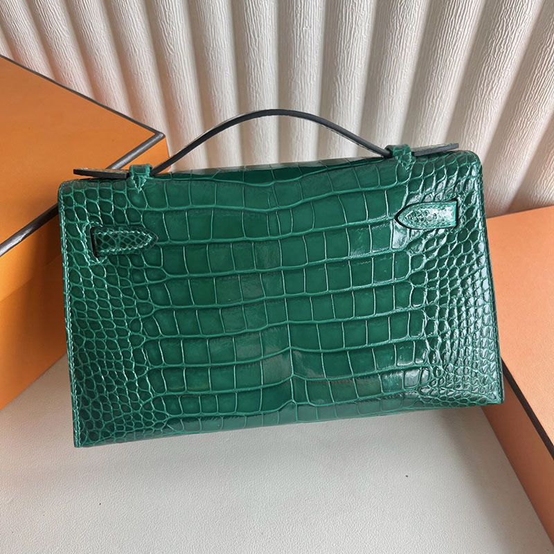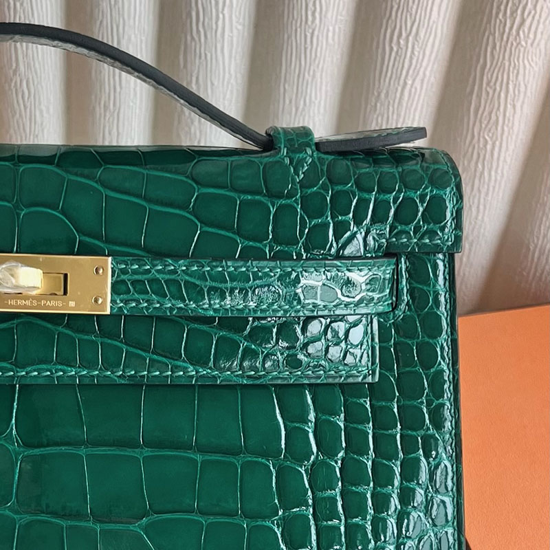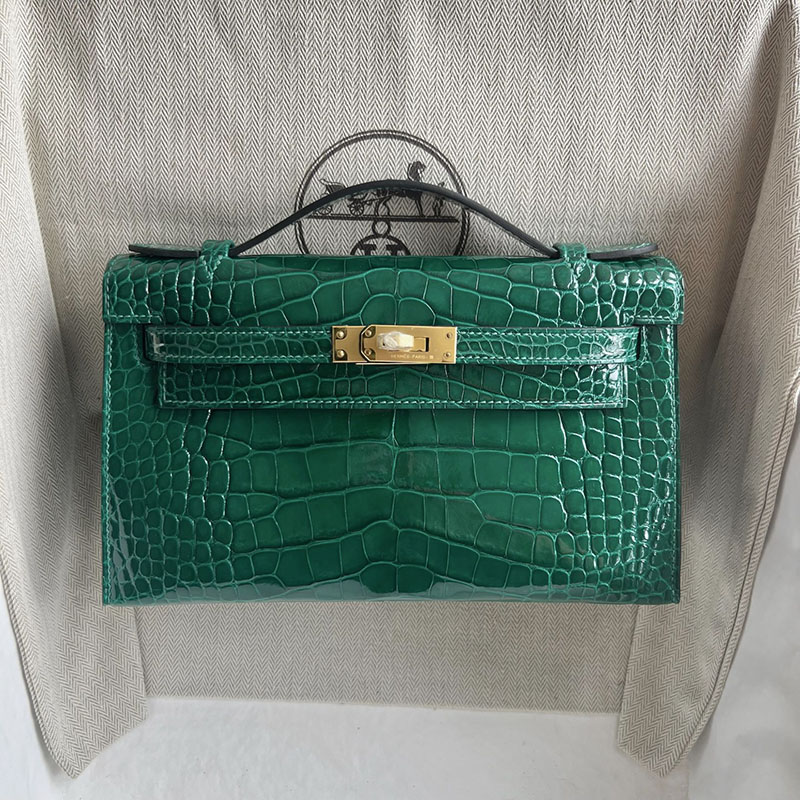 エルメス バッグ 人気 HERMES ポシェットケリー ヴェールエメラルド クロコダイル アリゲーターマット ゴールド金具 2521249 ケリーバッグ クロコダイル