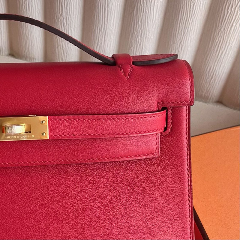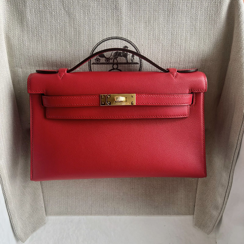 今流行りのバック レディース HERMES ポシェットケリー ルージュカザック スイフト ゴールド金具 2521263 ポシェットケリー ミニケリー