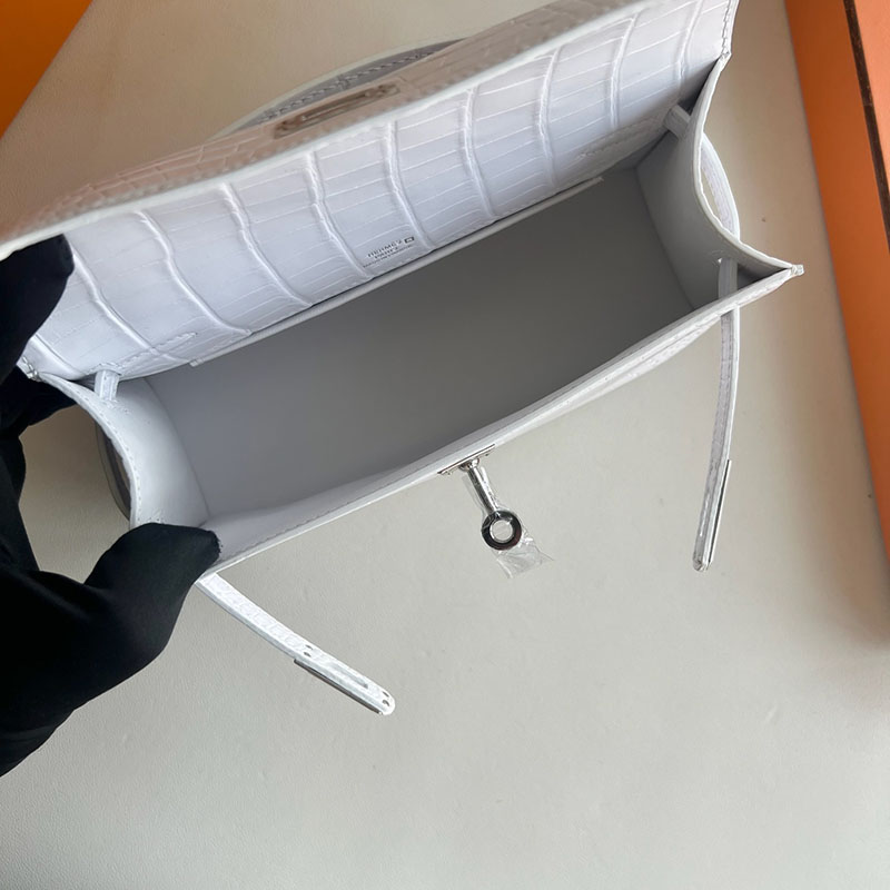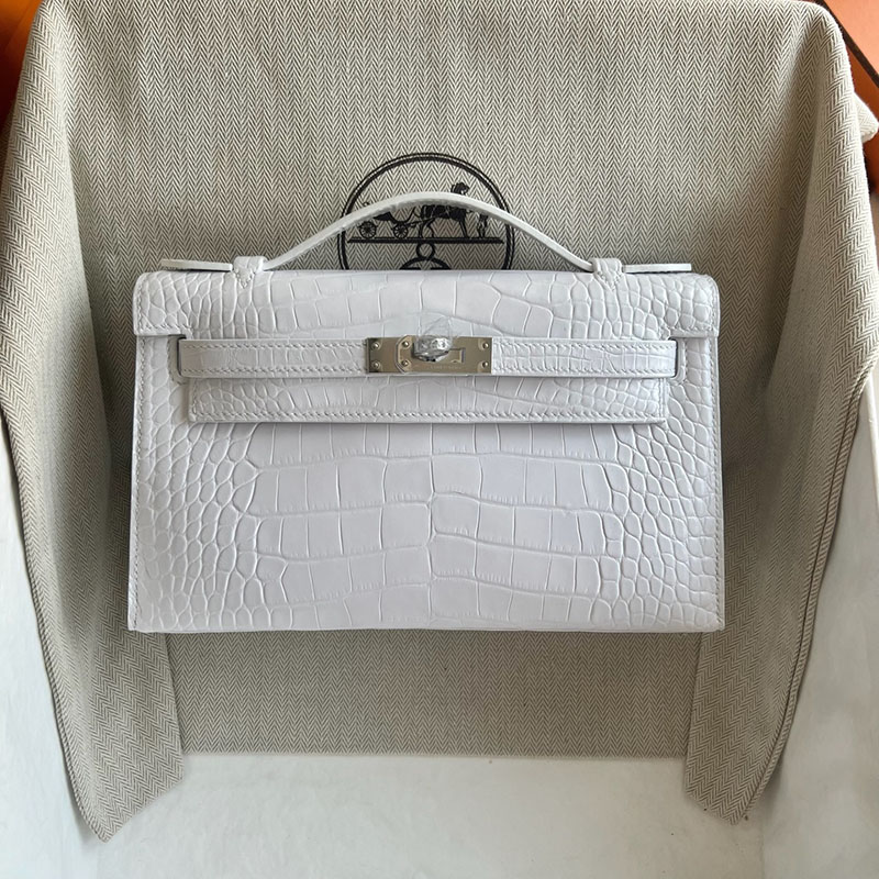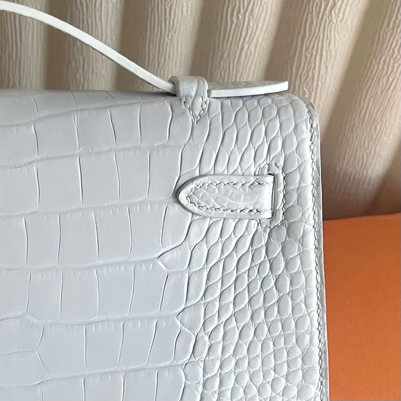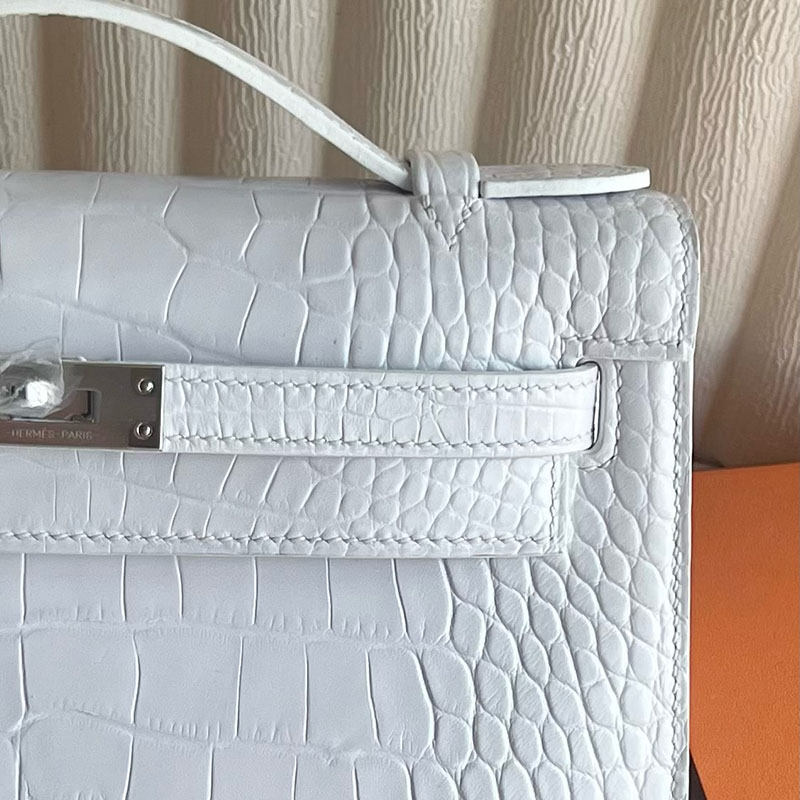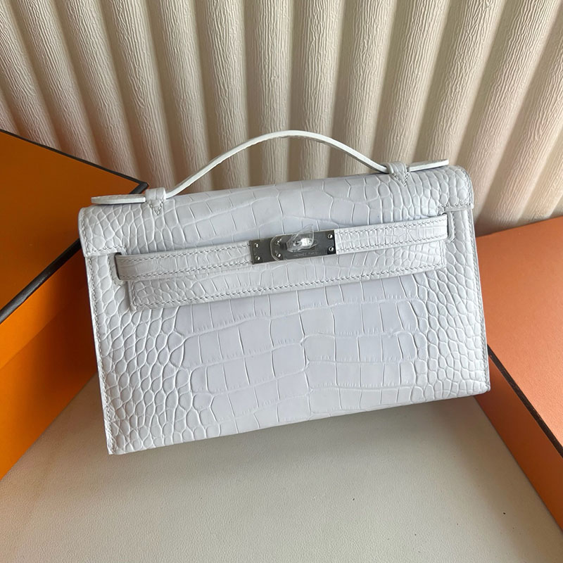 並行輸入品 HERMES ポシェットケリー 白 ホワイト クロコダイル アリゲーターマット シルバー金具 2521290 ケリーバッグ クロコダイル