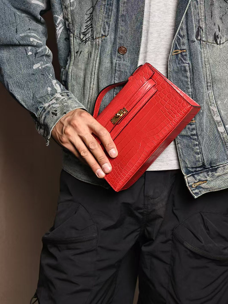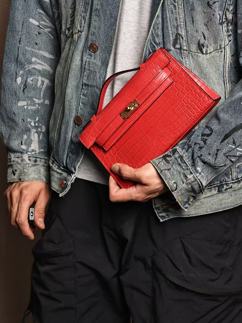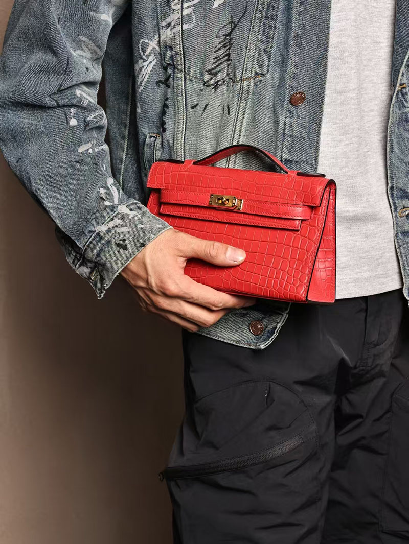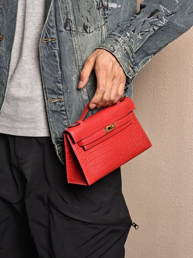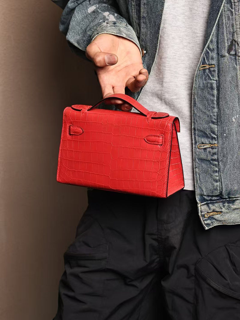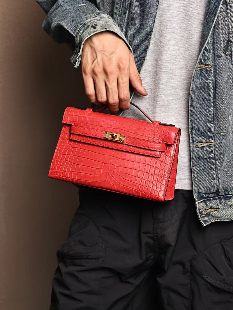 エルメスコピー ミニケリー 定価 HERMES ポシェットケリー ルージュヴィフ クロコダイル アリゲーターマット ゴールド金具 2524055