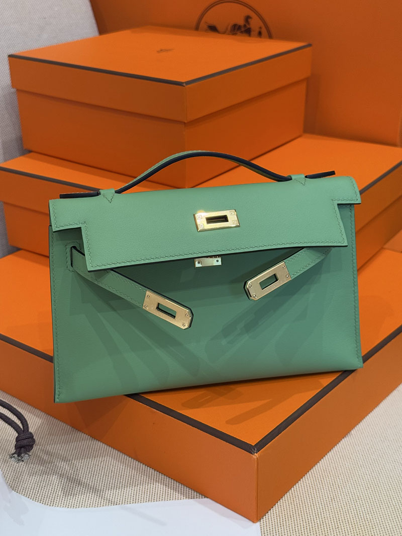エルメスコピー ポシェットケリー 定価 HERMES ポシェットケリー ヴェールクリケット スイフト ゴールド金具 2524176