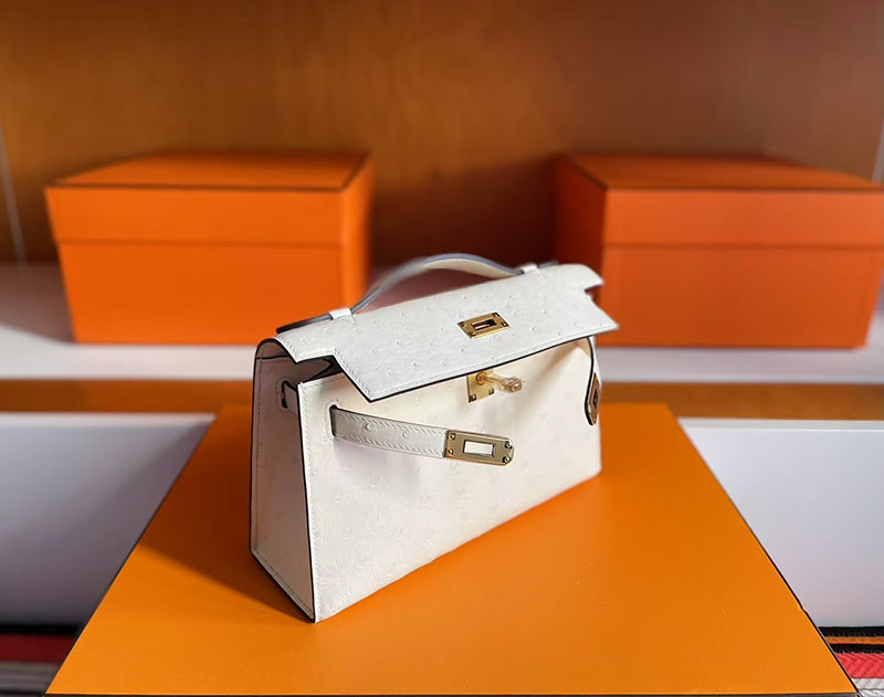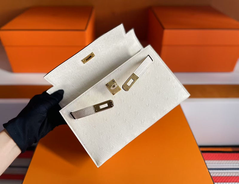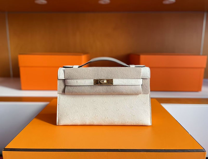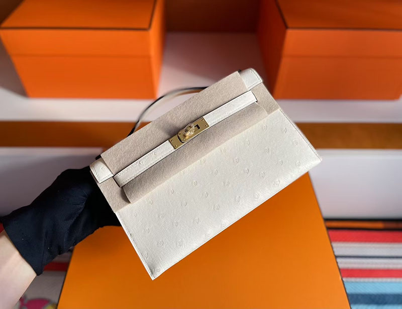 レディース オーストリッチバッグ HERMES ポシェットケリー クレ オーストリッチ ゴールド金具 2627712 エルメス 新作バッグ