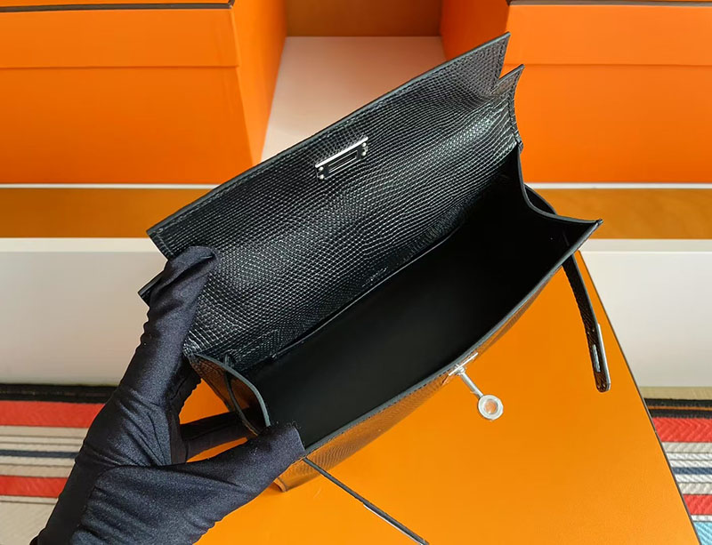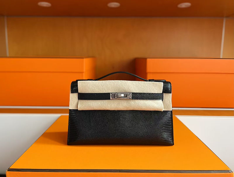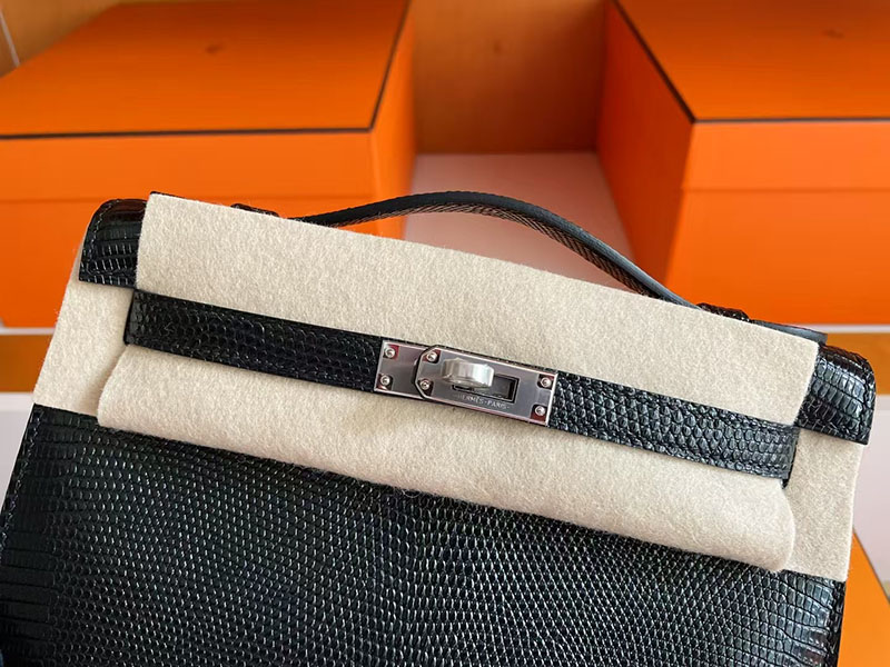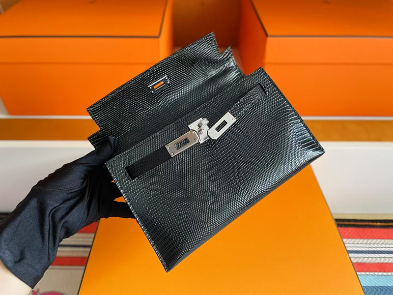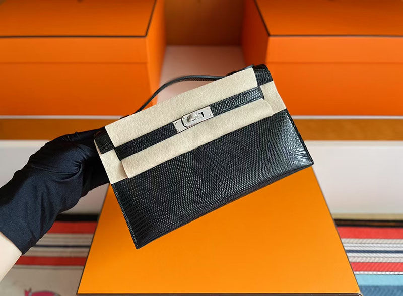 エルメス ポシェットケリー HERMES ポシェットケリー 黒 ブラック リザード シルバー金具 2627748 エルメス 新作バッグ