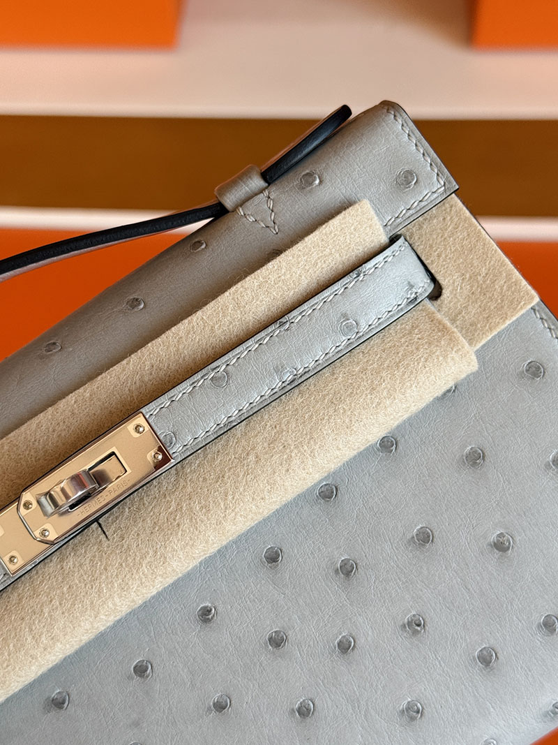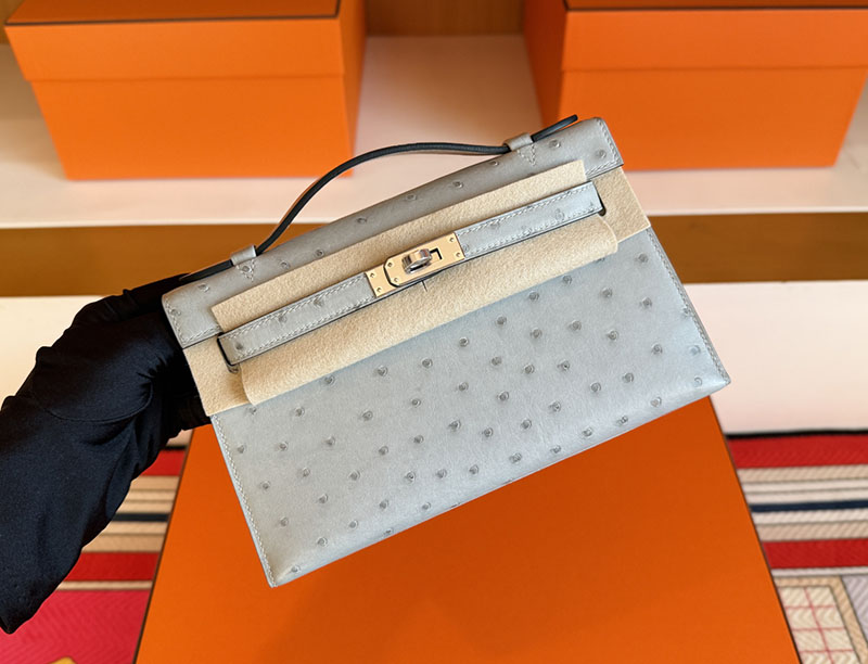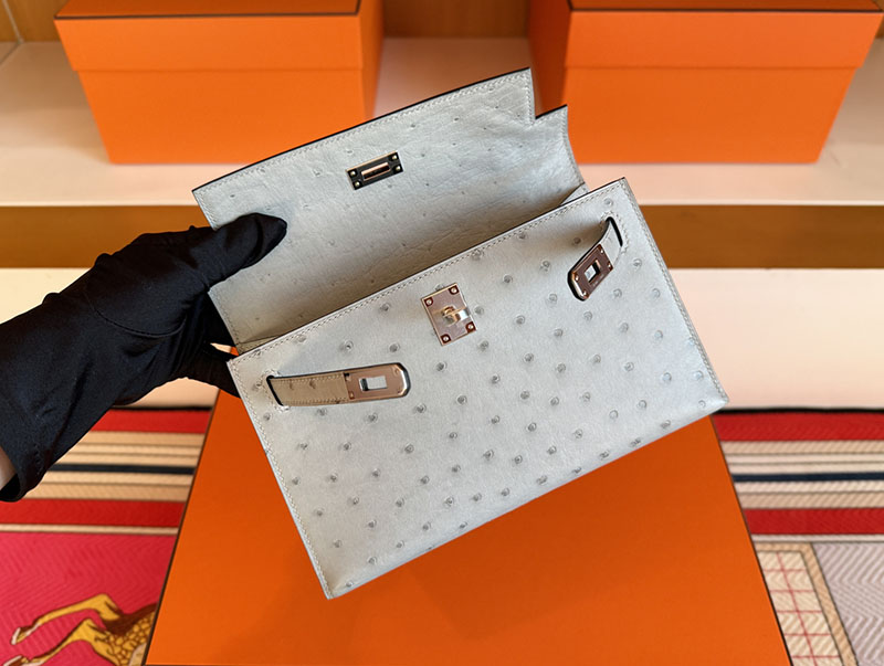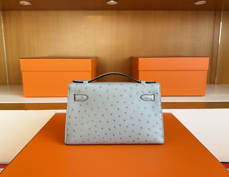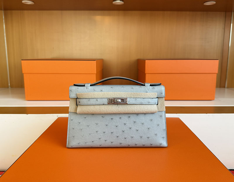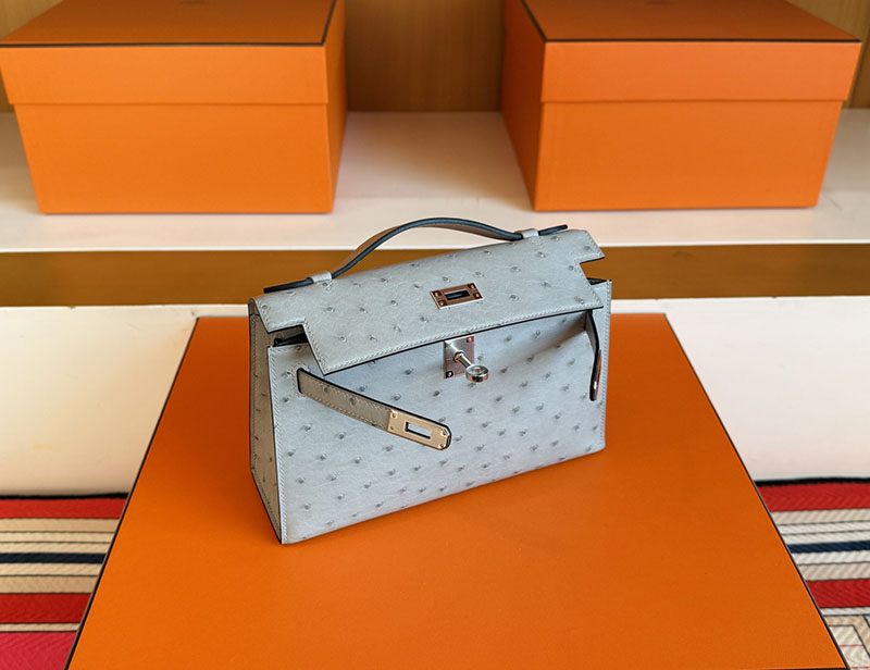 エルメス ミニケリー 値段 HERMES ポシェットケリー ブルーグラシエ オーストリッチ シルバー金具 2627860 エルメス 新作バッグ