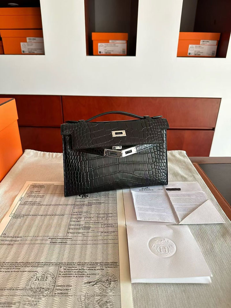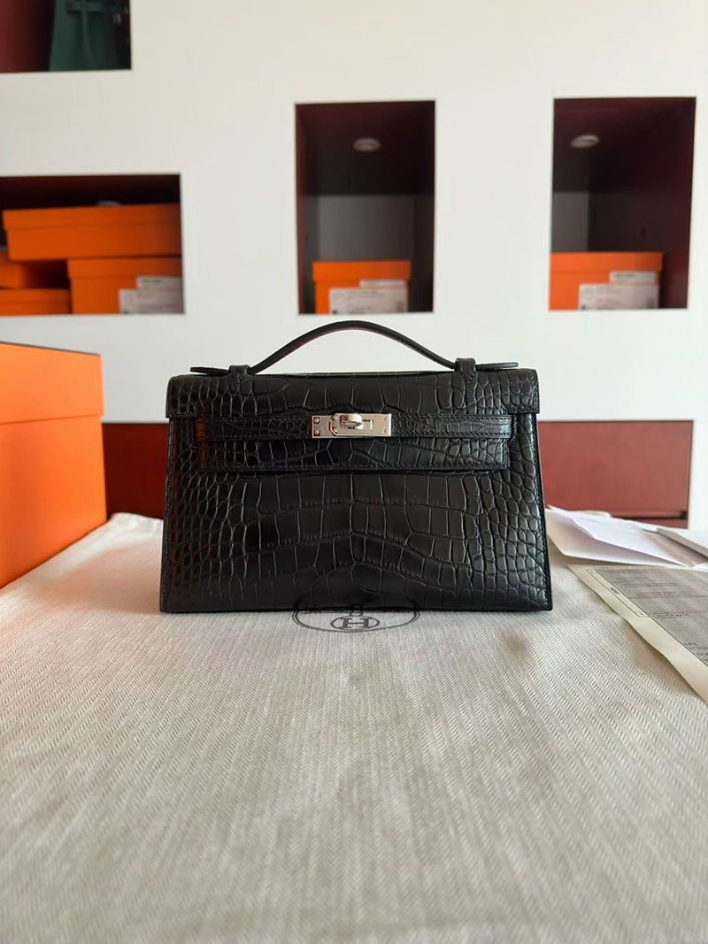 エルメス ポシェットケリーバッグ HERMES ポシェットケリー クロ クロコダイル シルバー金具 2630348 エルメス ポシェット ケリー 定価