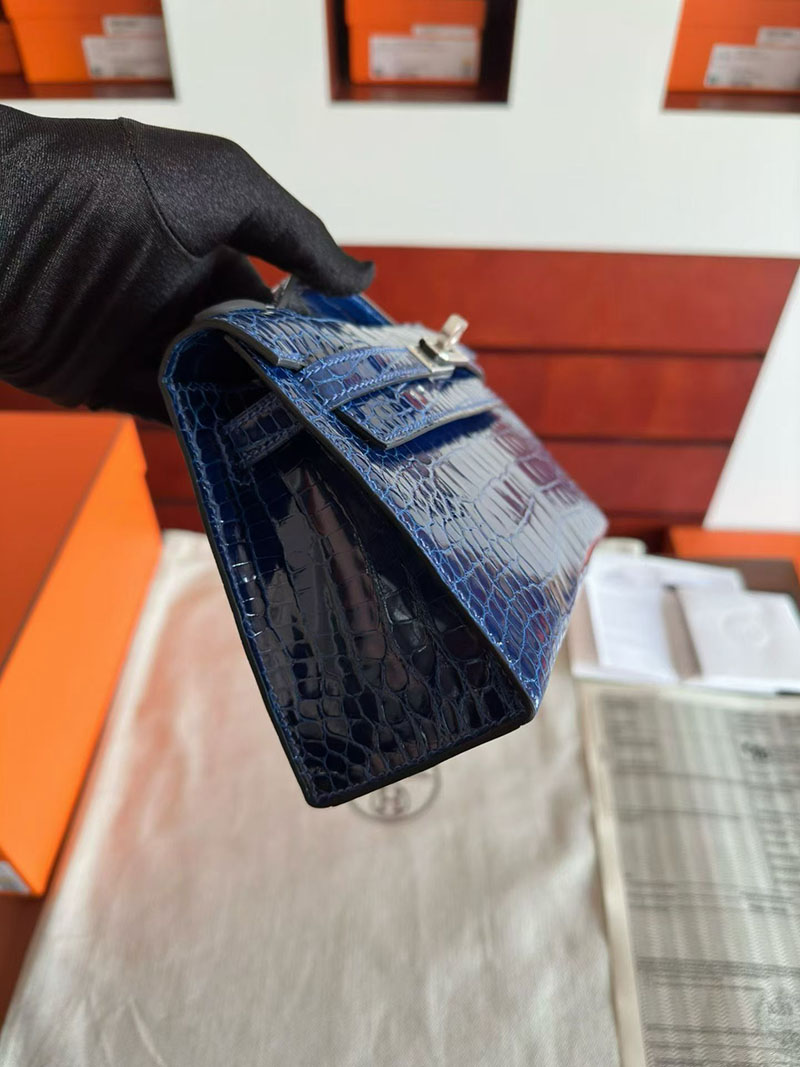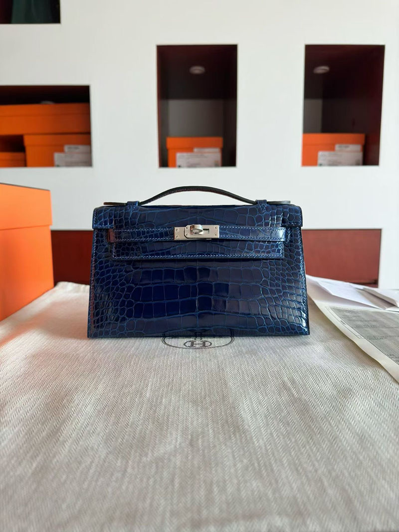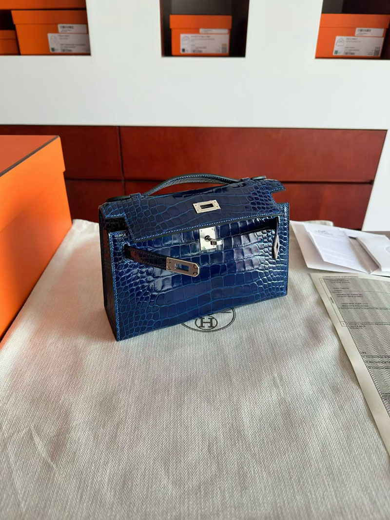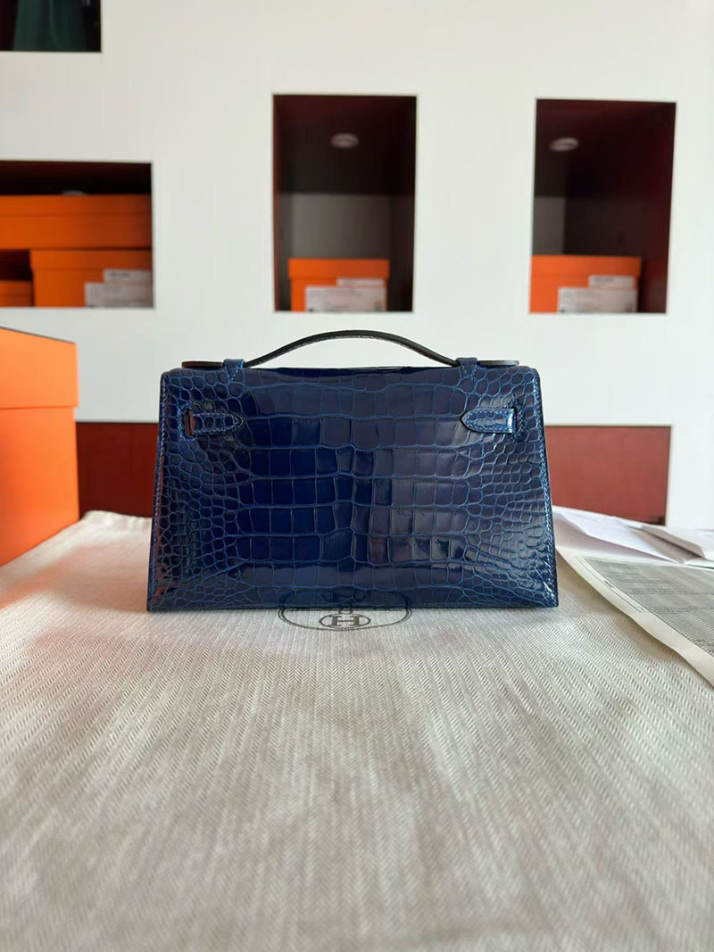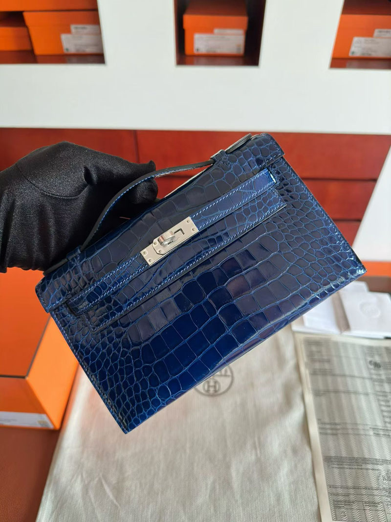 エルメス ポシェットケリーバッグ HERMES ポシェットケリー ブルーアビス クロコダイル シルバー金具 2630349 エルメス ケリー 定価