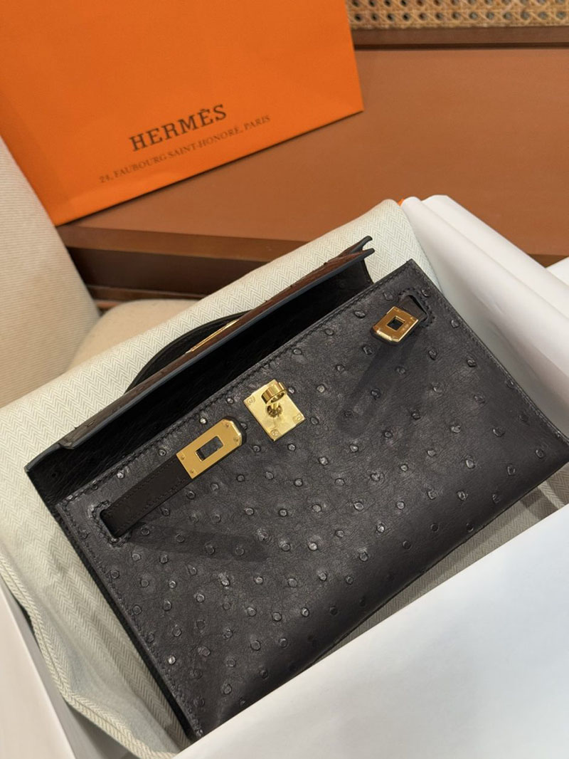 エルメス ポシェットケリーの通販 HERMES ポシェットケリー 黒 ブラック オーストリッチ ゴールド金具 2631452 ケリー オーストリッチ 定価