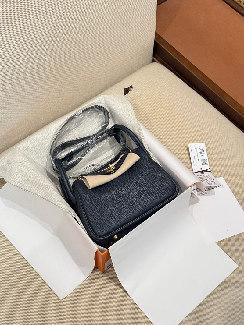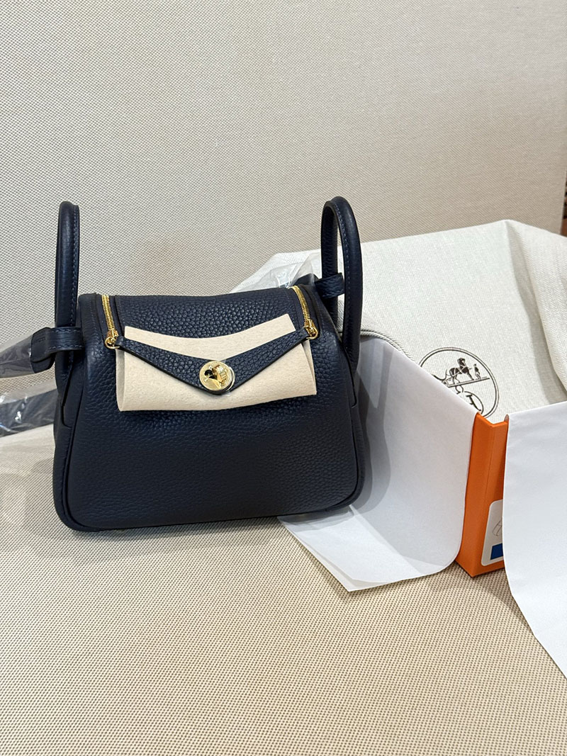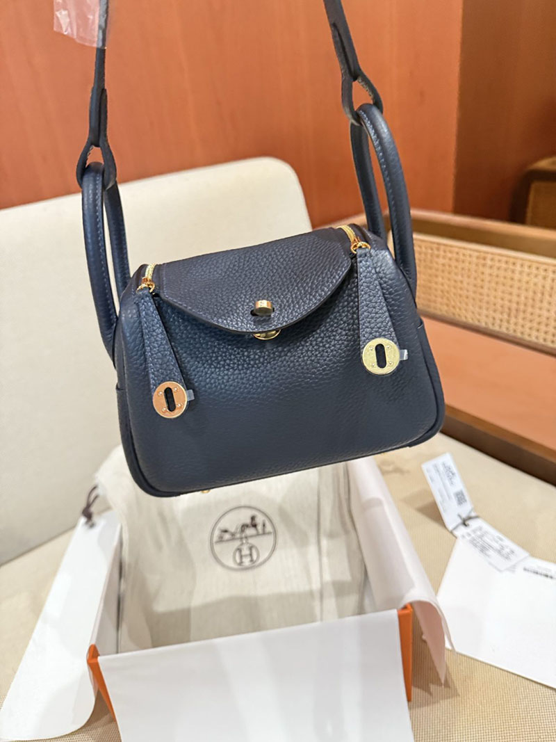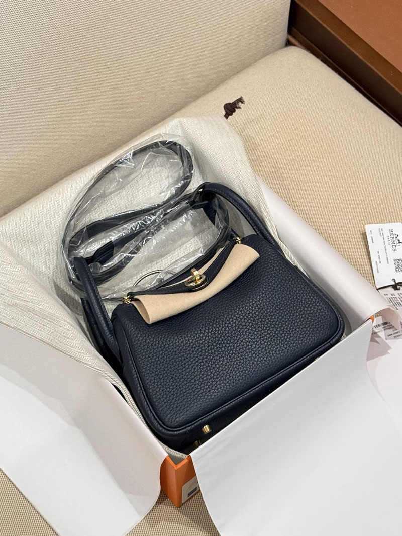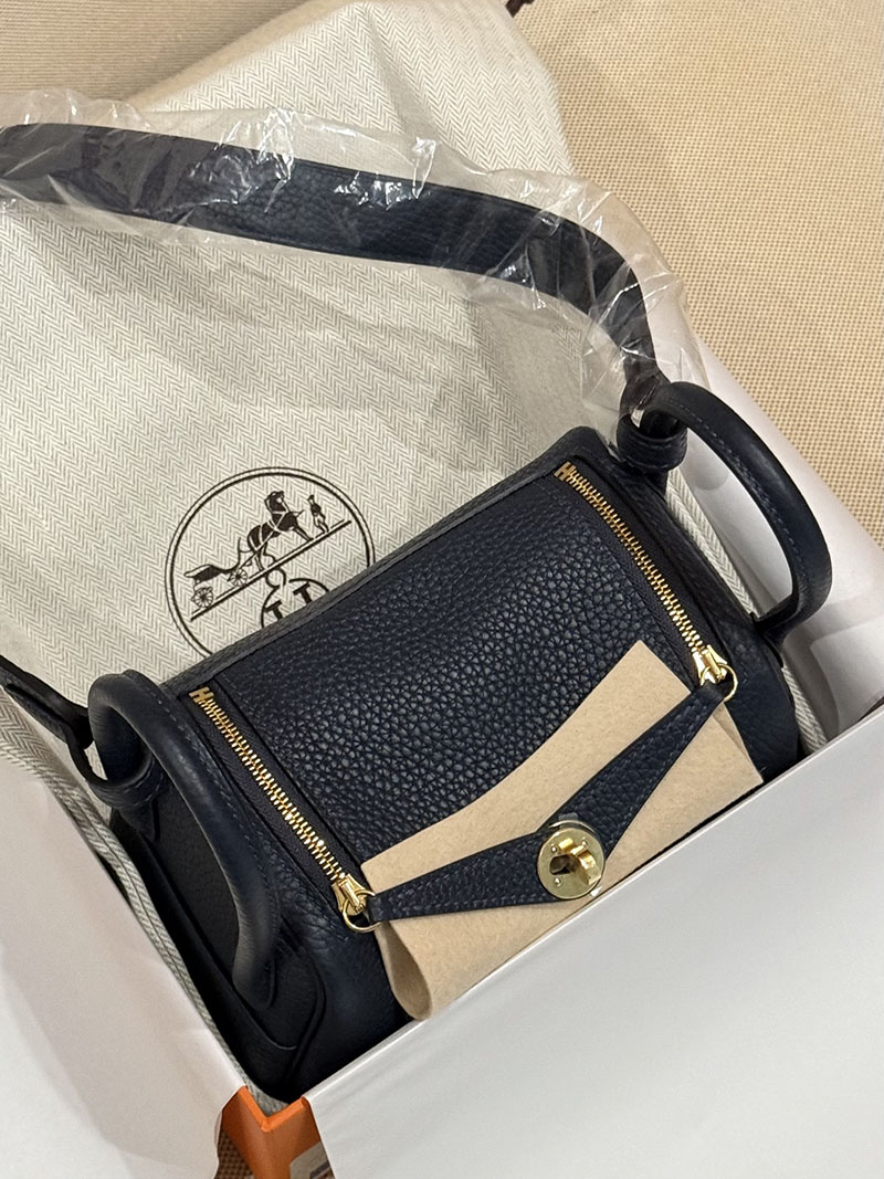 エルメスコピー リンディミニ 定価 HERMES ミニリンディ ブルーニュイ トリヨンクレマンス ゴールド金具 2524118