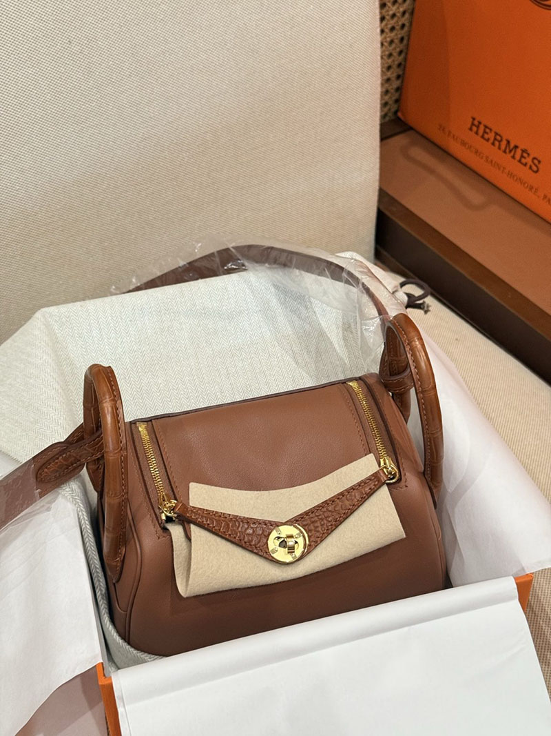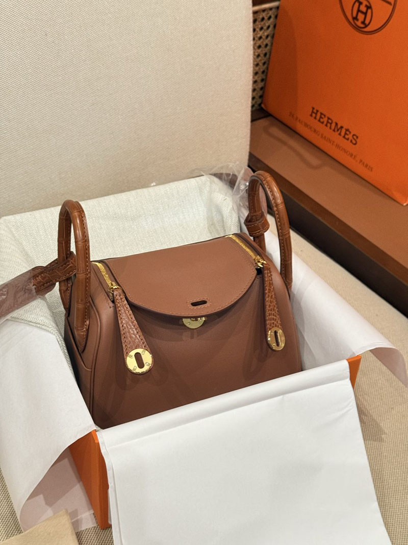 レディース エルメス バッグ HERMES ミニリンディ ゴールド スイフト/クロコダイル ゴールド金具 2526018 リンディ ミニ 定価