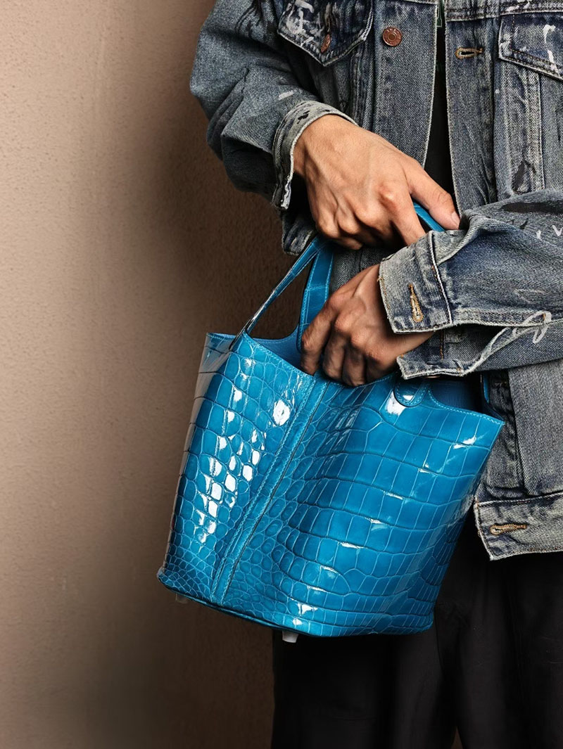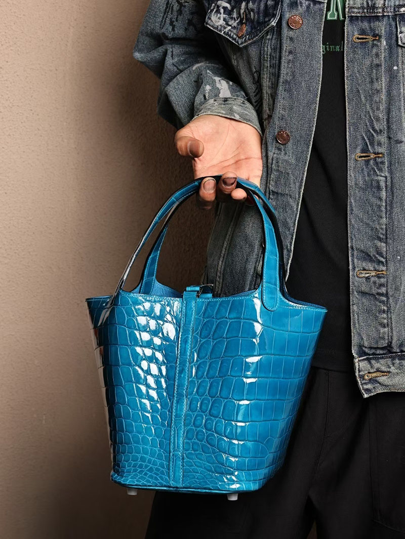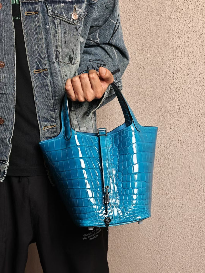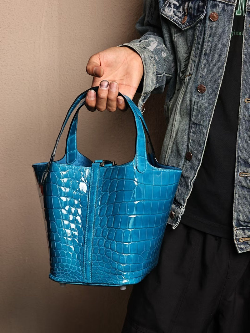 エルメスコピー ピコタンMM 定価 HERMES ピコタンロック 22 MM アクア クロコダイル ポロサスマット シルバー金具 2524101