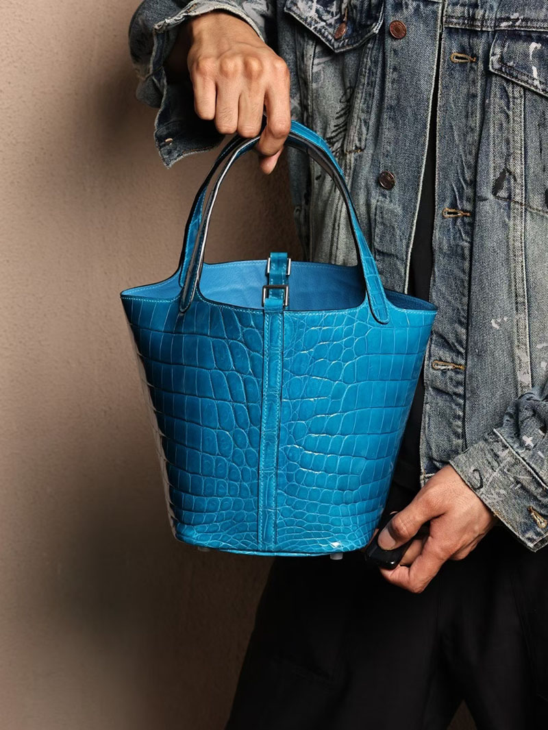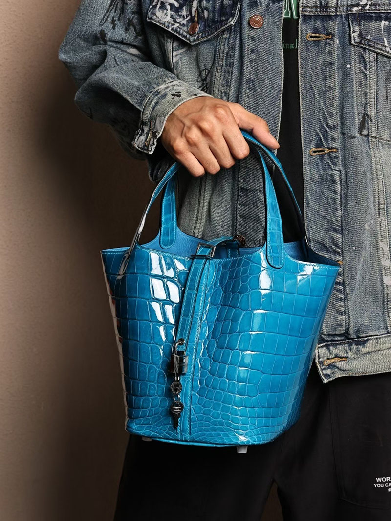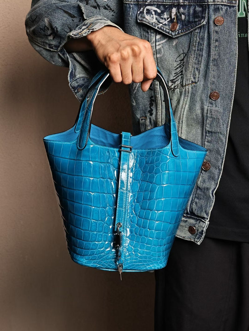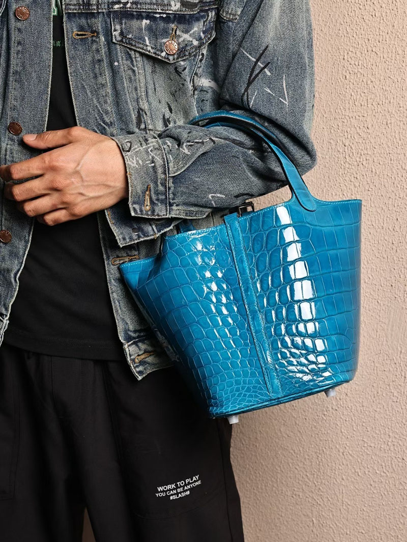 エルメスコピー ピコタンMM 定価 HERMES ピコタンロック 22 MM アクア クロコダイル ポロサスマット シルバー金具 2524101
