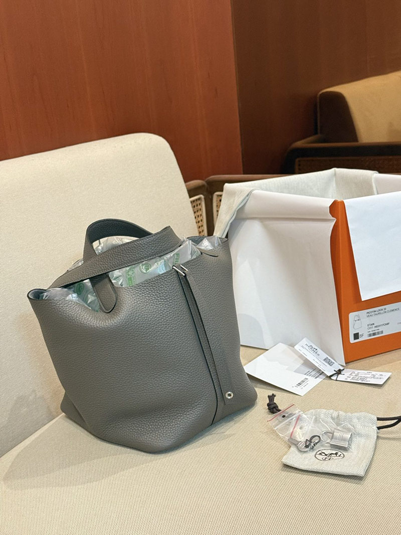 エルメスコピー ピコタンMM 定価 HERMES ピコタンロック 22 MM エタン トリヨンクレマンス シルバー金具 2524133