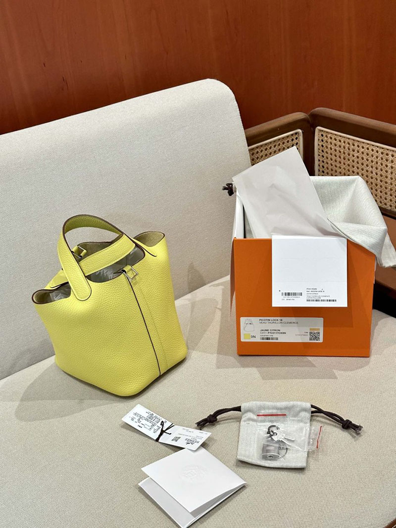 エルメス アウトレット 店舗 HERMES ピコタンロック 18 PM ジョーヌシトロン トリヨンクレマンス シルバー金具 2520849 ピコタン風バッグ