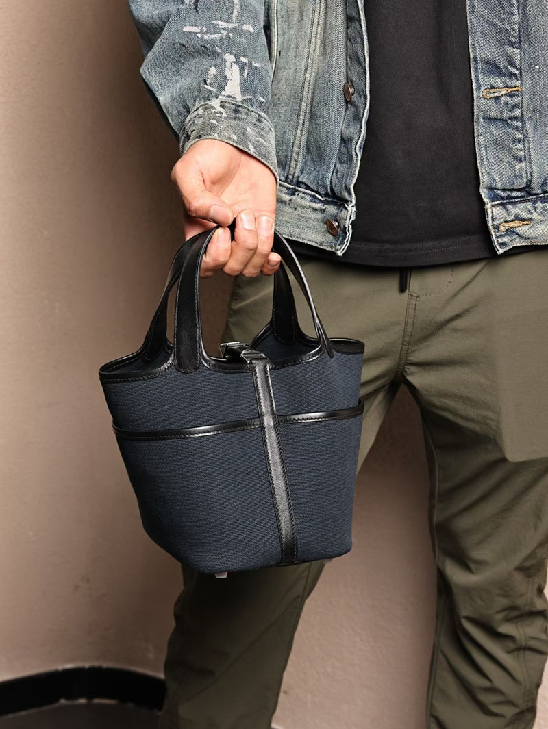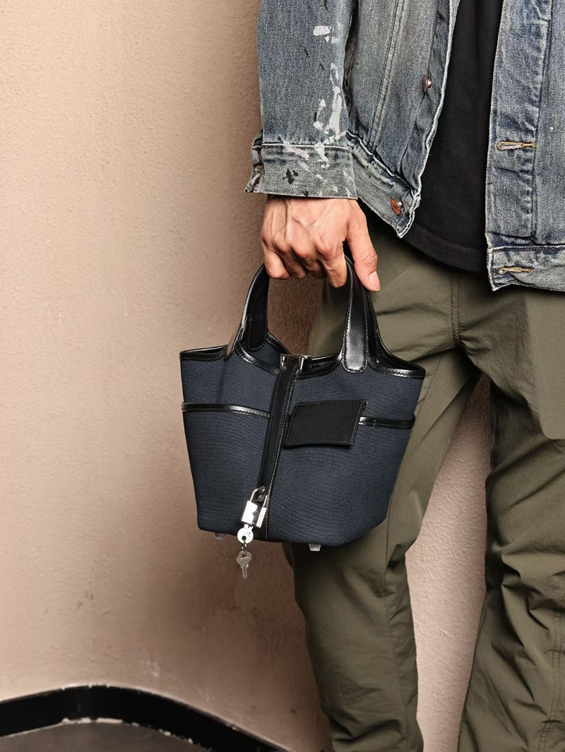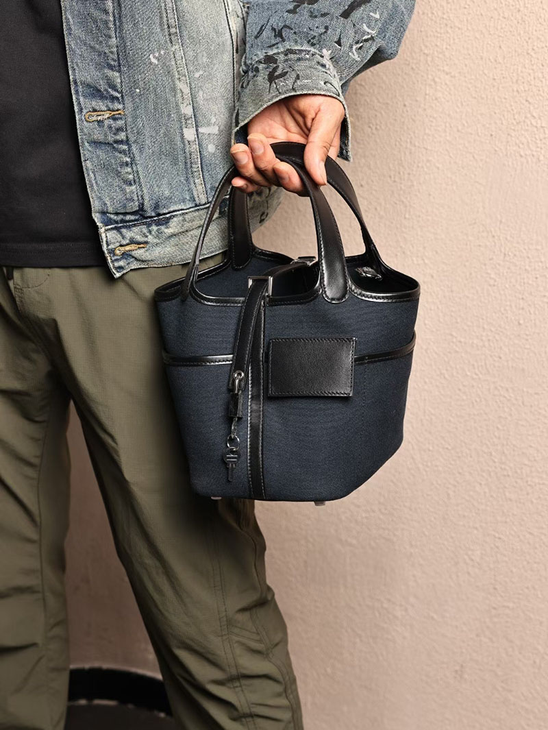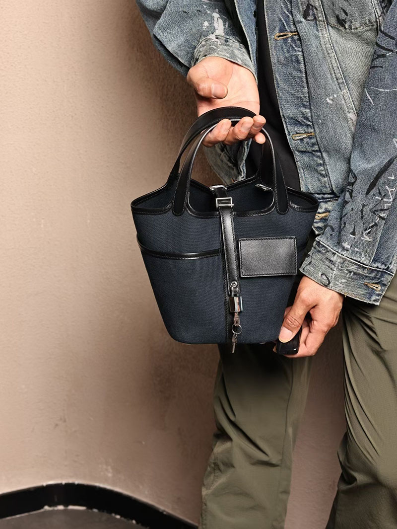 エルメスコピー HERMES ピコタンロック PM ポケット 黒 ブラック/ブルーニュイ トワルゴエラン×スイフト シルバー金具 2524083