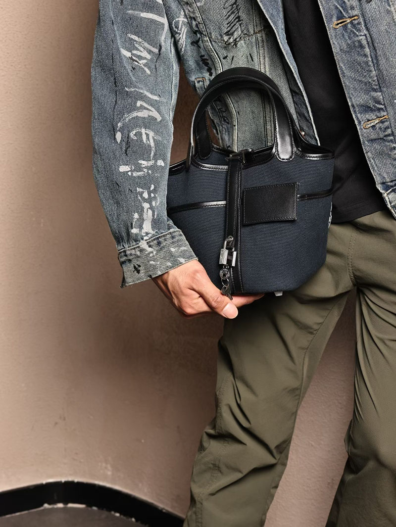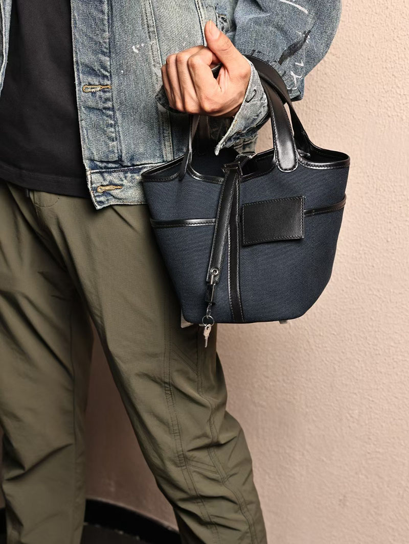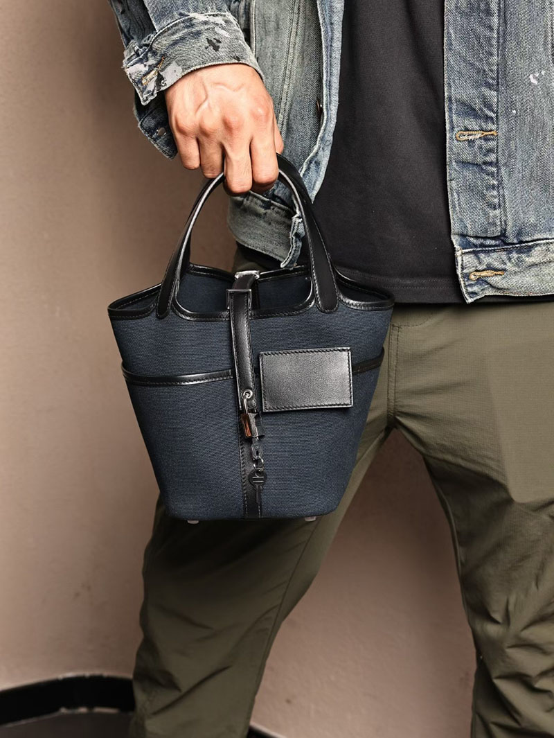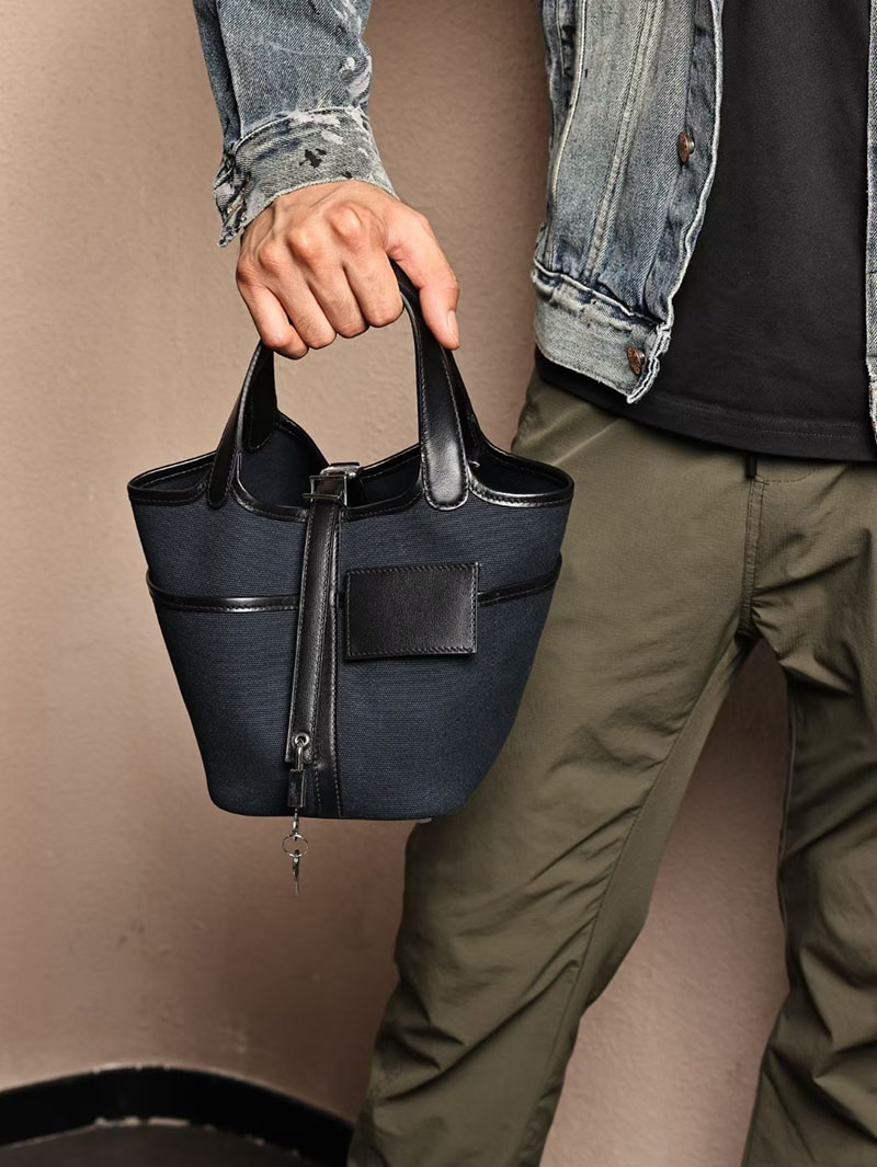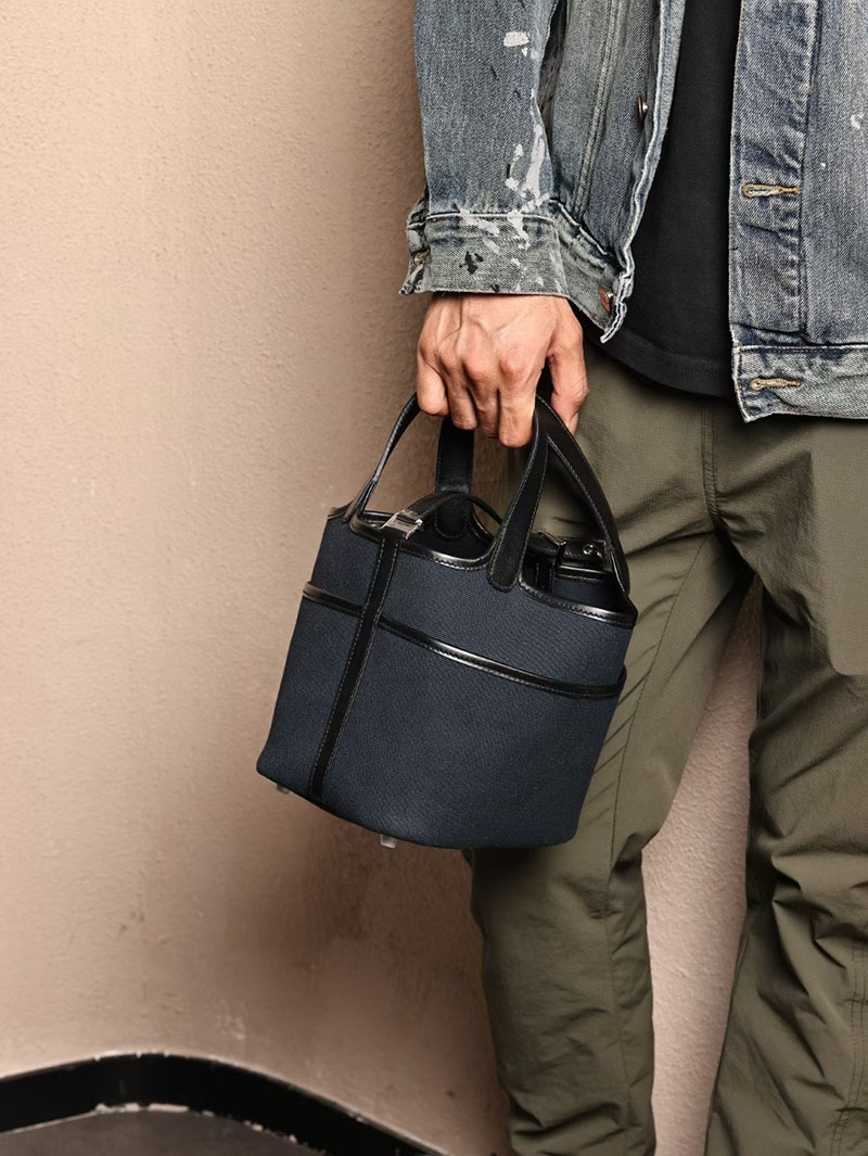 エルメスコピー HERMES ピコタンロック PM ポケット 黒 ブラック/ブルーニュイ トワルゴエラン×スイフト シルバー金具 2524083