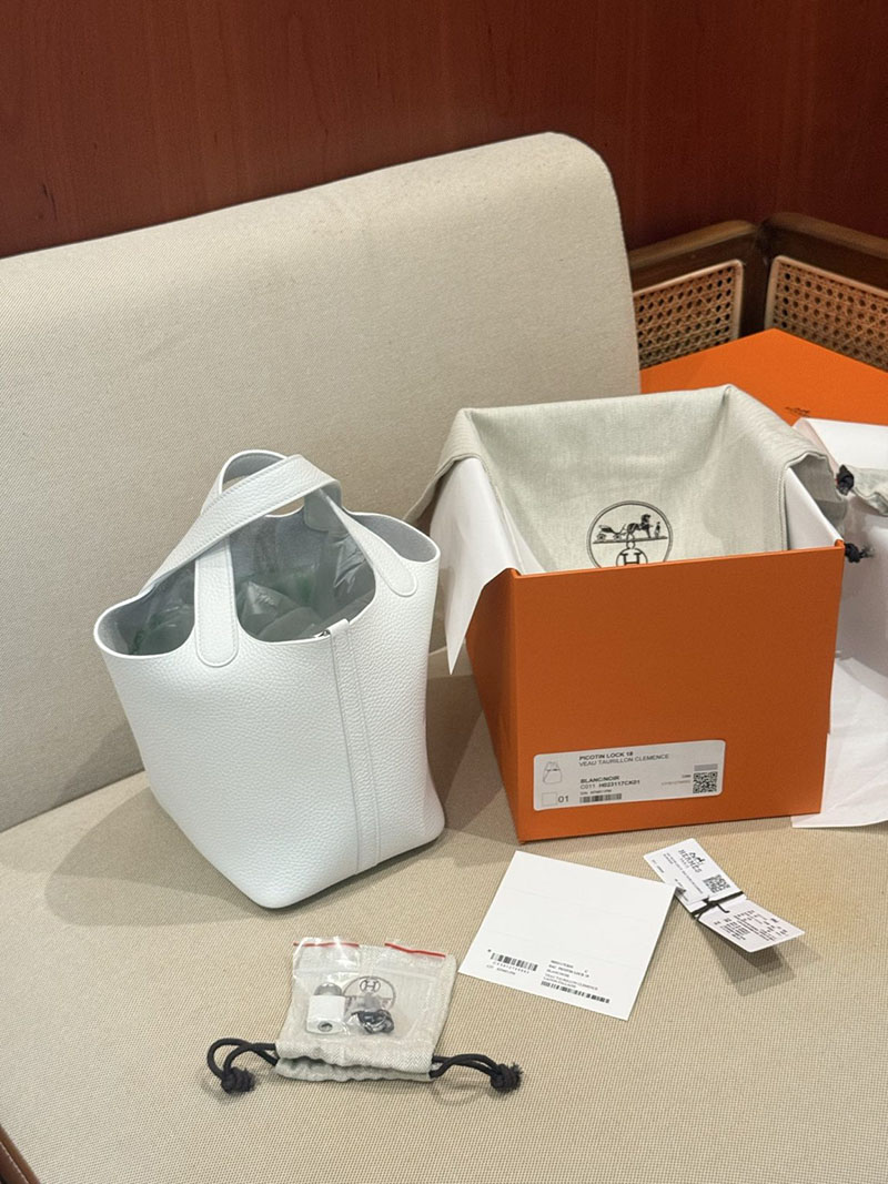 エルメス バッグ ピコタン定価 HERMES ピコタンロック 18 PM 白 ホワイト トリヨンクレマンス シルバー金具 2524155