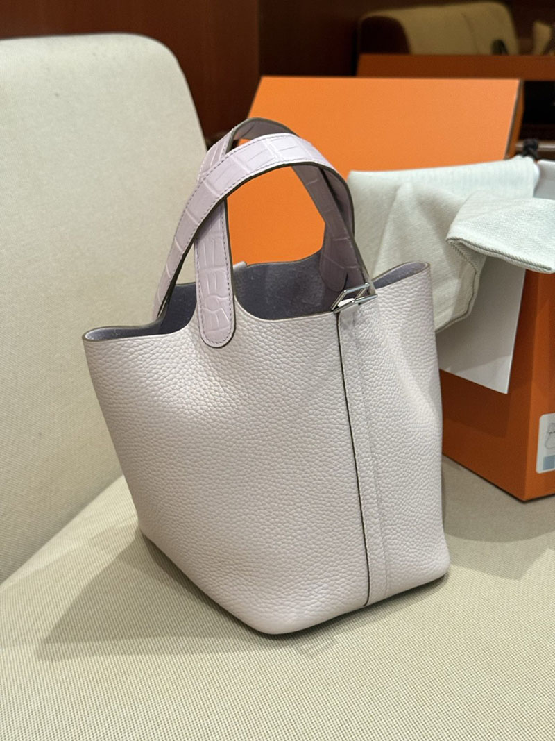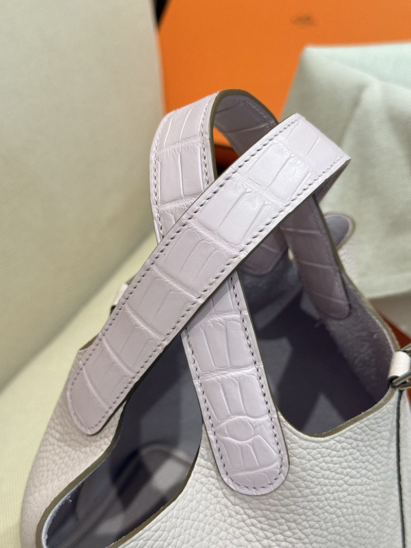 ピコタン タッチ クロコ 定価 HERMES ピコタンロック 18 PM モーヴペール トリヨンクレマンス クロコダイル シルバー金具 2627513 エルメス専門店