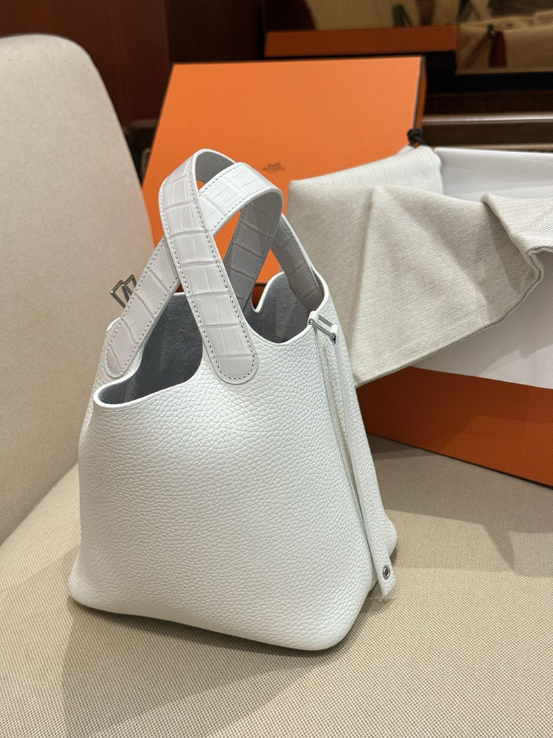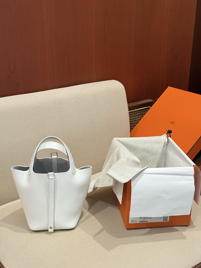 ピコタン ロックタッチ アリゲーター HERMES ピコタンロック 18 PM ホワイト トリヨンクレマンス クロコダイル シルバー金具 2627514