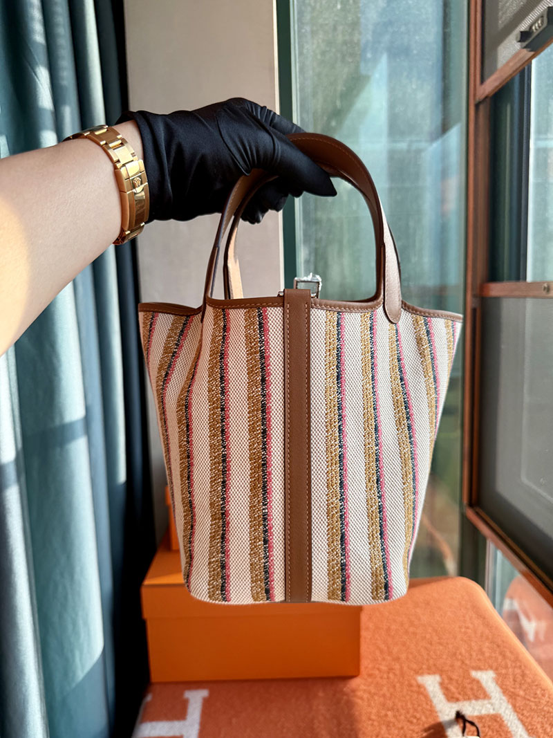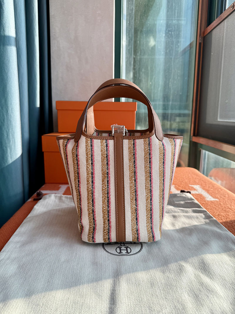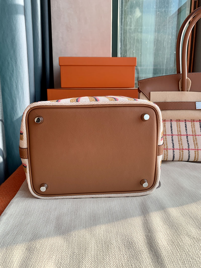 エルメス ピコタン風 HERMES ピコタンロックPM ハンドバッグ ゴールド トワルアッシュ ヴォースイフト シルバー金具 2627847 エルメス 新作バッグ