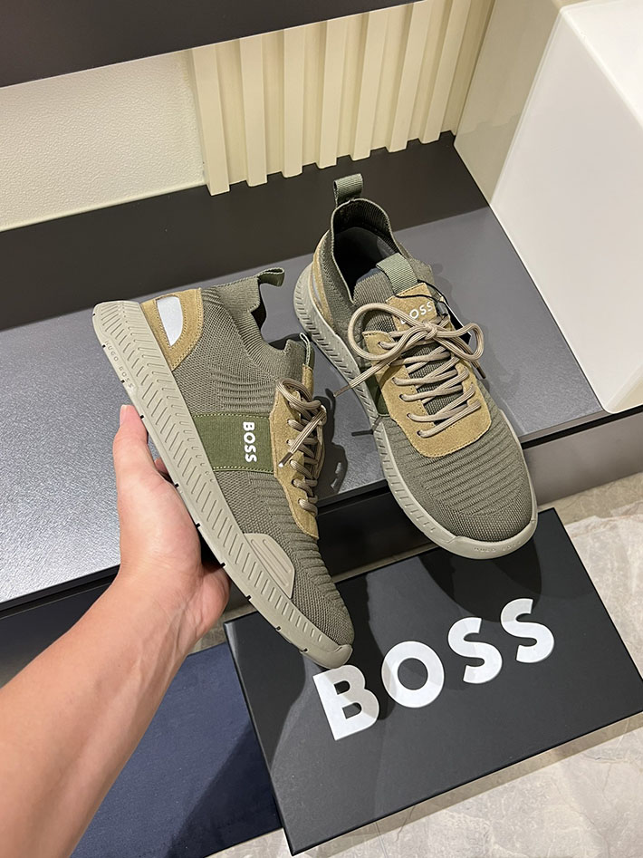 最高級Bossスーパーコピー ヒューゴボススニーカーコピー BOSS スニーカー アウトレット 2025年新作 カーキ レザー 2515848