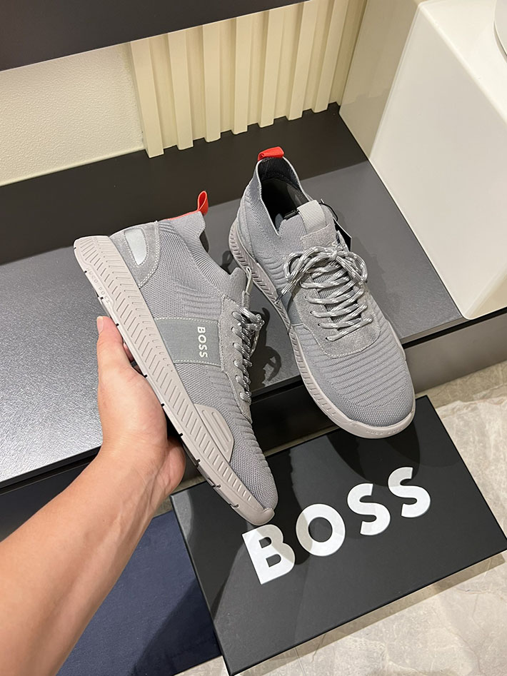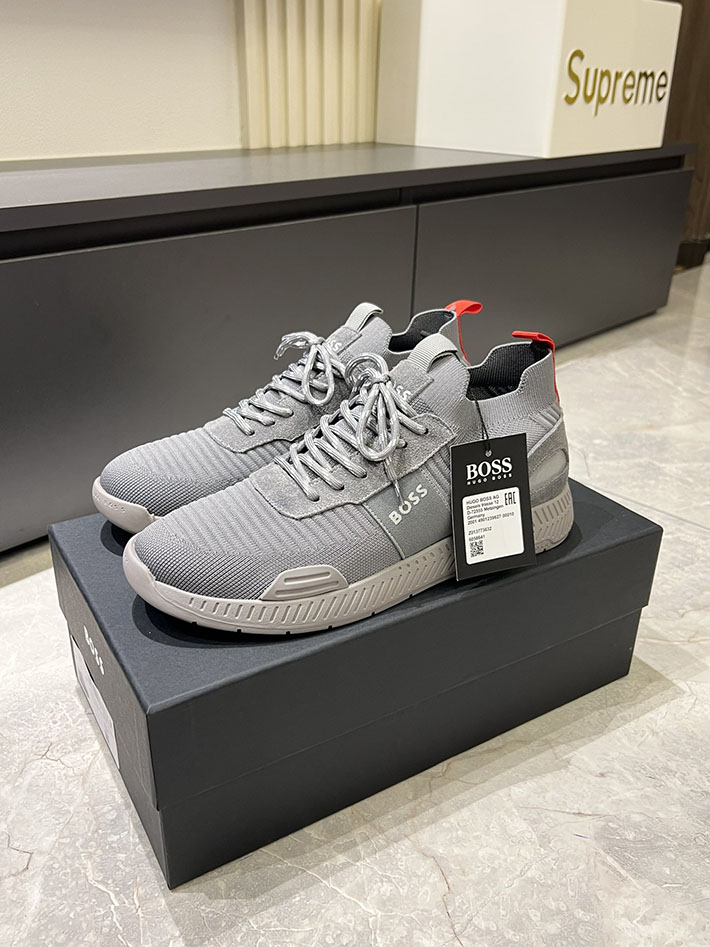 最高級Bossスーパーコピー ヒューゴボススニーカーコピー BOSS スニーカー アウトレット 2025年新作 グレー レザー 2515849
