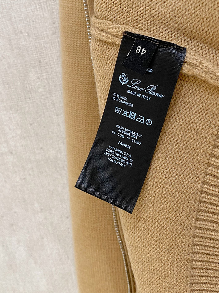 最高級ロロ・ピアーナスーパーコピー LoroPiana ジップジャケット メンズ ブラウン 2525089 ロロ・ピアーナ カシミヤセーター