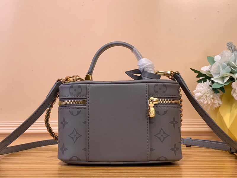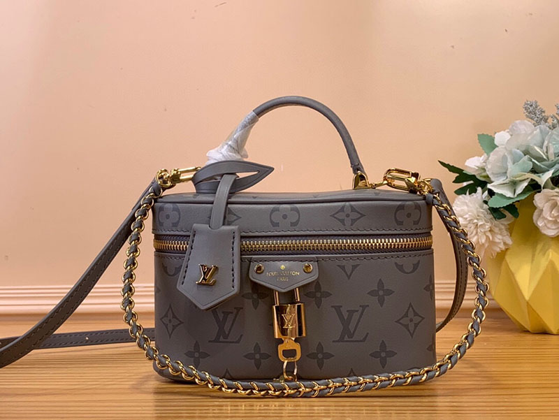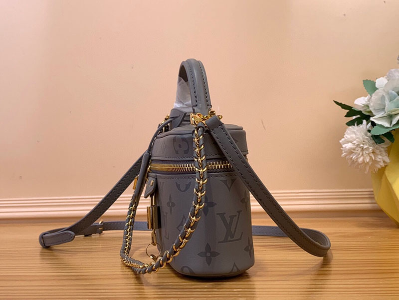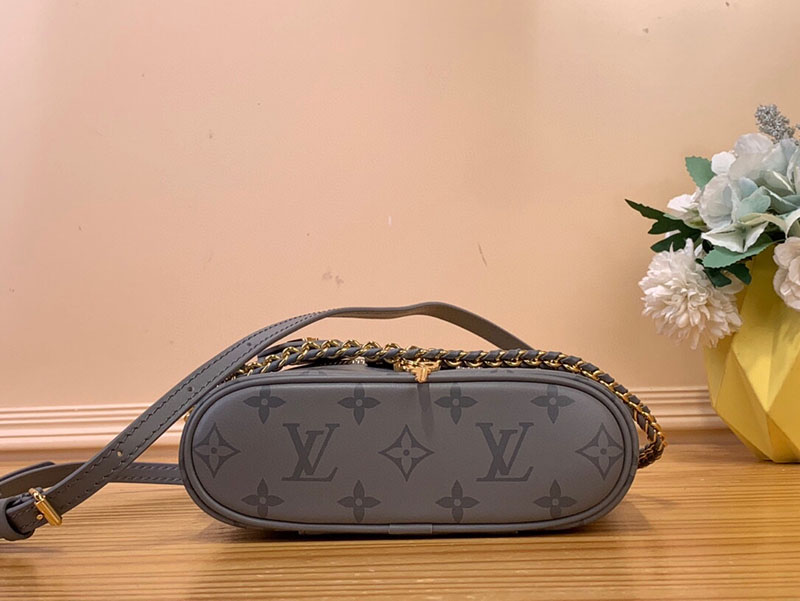 アイコンバッグ「ニース」から着想を得た「ヴァニティ・チェーン ポーチ」。メゾンの旅の真髄(こころ)が息づく一品です。2024秋冬のランウェイに登場した控えめなトーン・オン・トーンで表現したモノグラム・パターンで今シーズンならではのアップデートを加え、スムースレザーのハンドルで仕上げました。LV ロゴの刻印入りパドロック(錠前)やレザーのキーベル、編み上げチェーンなどふんだんに散りばめた特徴的なディテールも魅力。
