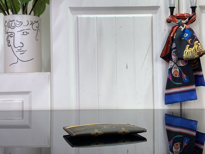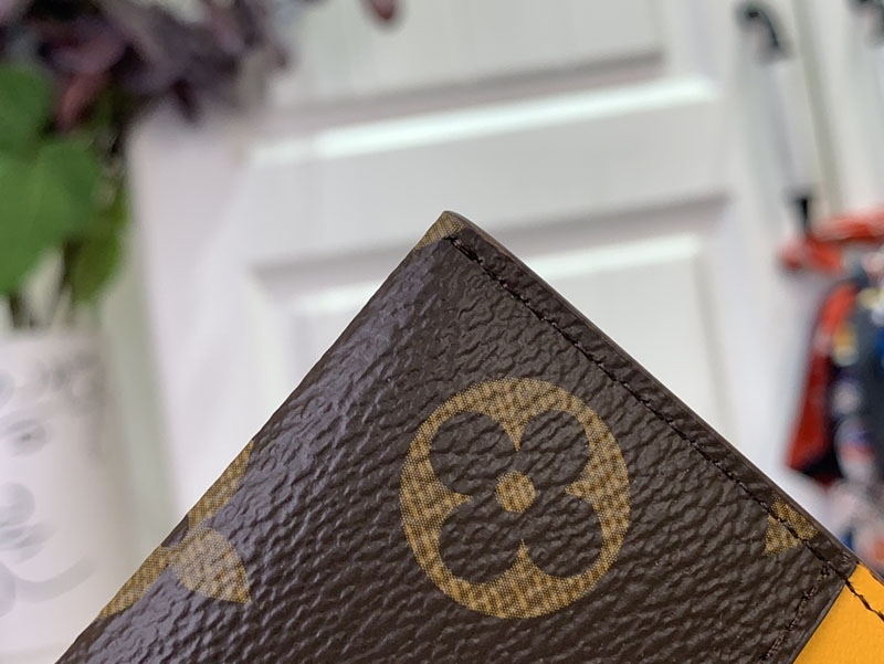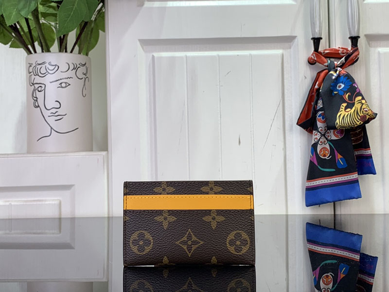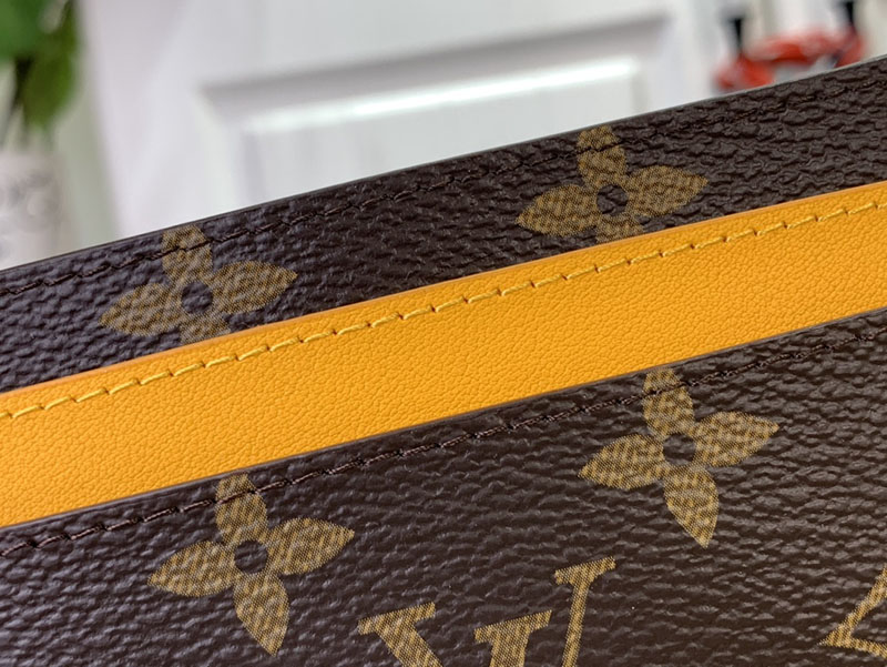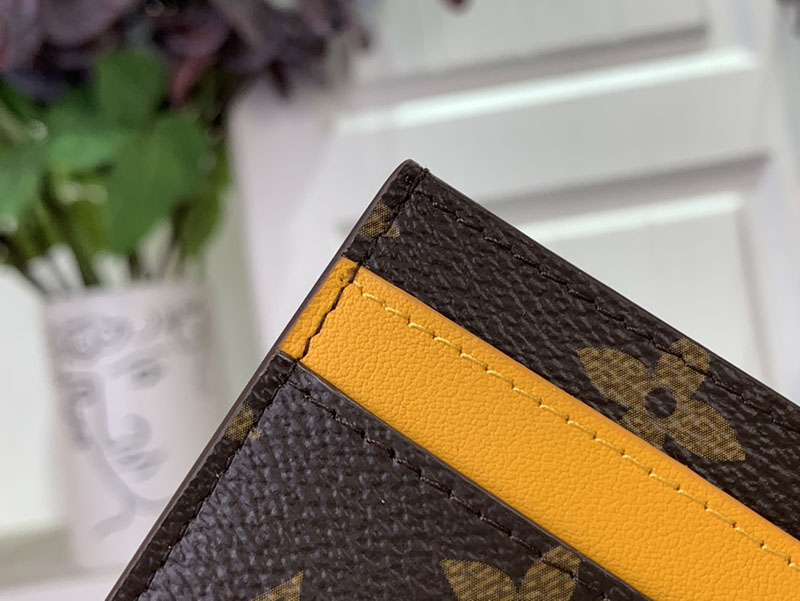 メゾン定番のキャンバスの1つであるモノグラム・マカサーで仕上げた端正な表情のカードホルダー。さりげないカラーアクセントが魅力です。上部にあしらった染色したカウハイドレザーのバンドと同系色のライニングが、意外性のあるひねりをプラス。4つのカードスロットに加え、クレジットカードや交通系ICカード、名刺などを収納できるセンターポケットを備えています。
