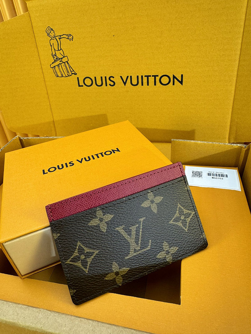 並行輸入品 ルイヴィトン カードケース ポルト カルト・サーンプル M60703 RFID モノグラム フューシャ lv カードケース 薄型 人気