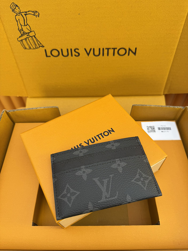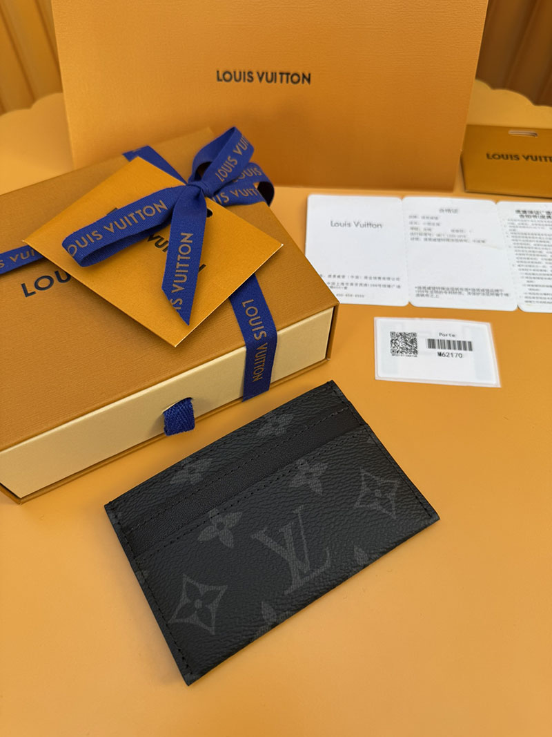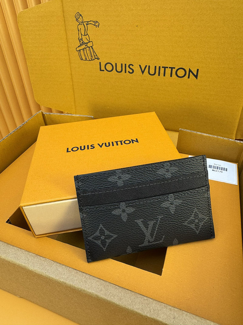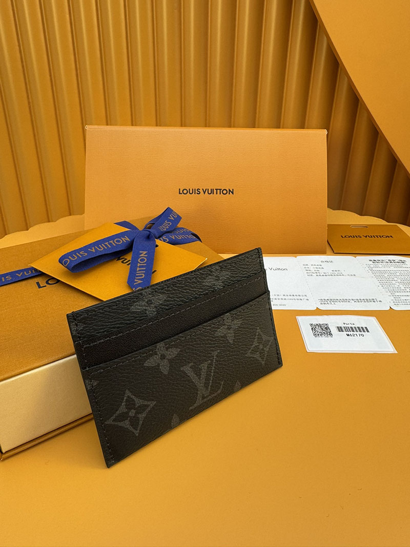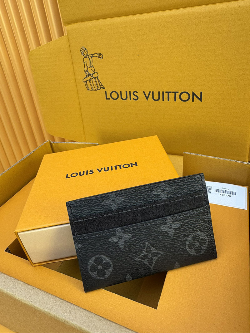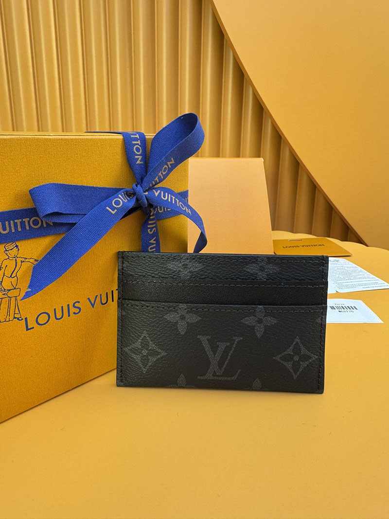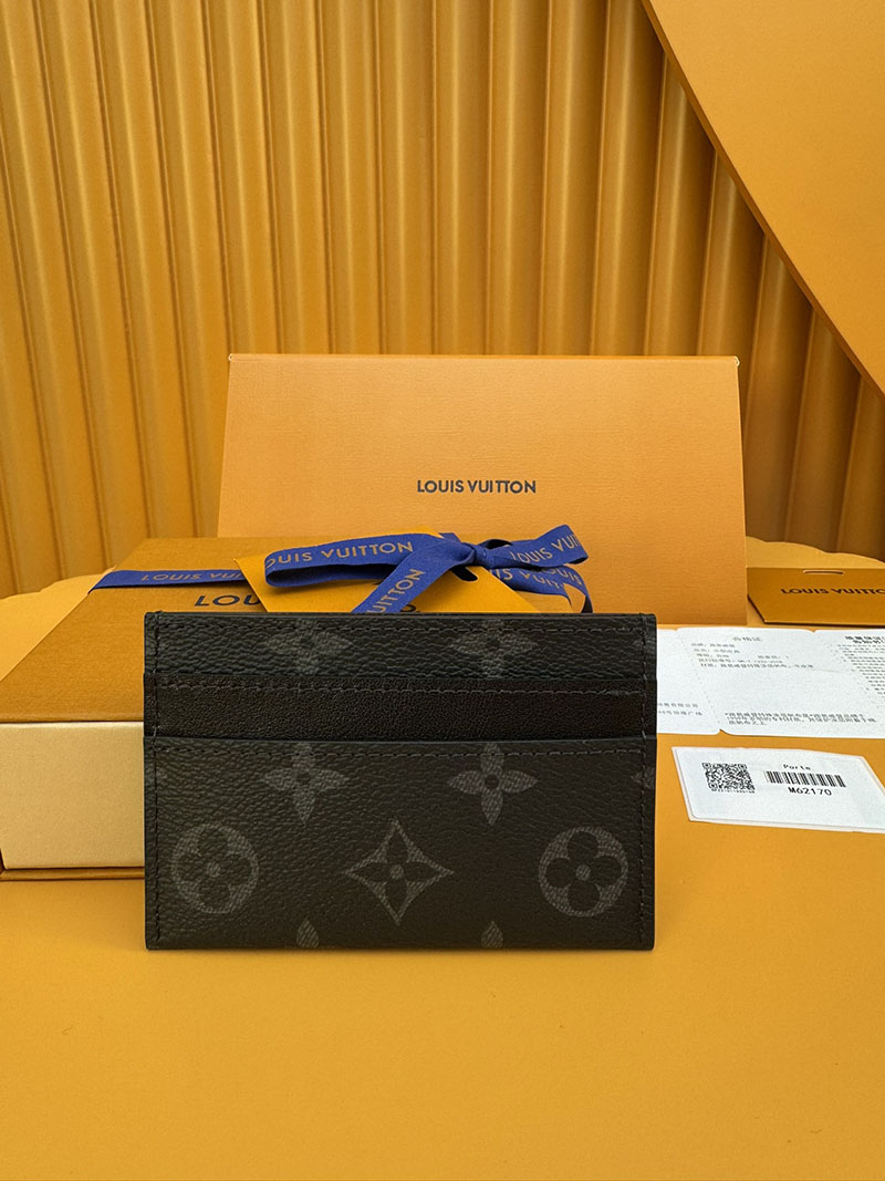 モノグラム・エクリプス キャンバスを使用したスマートでシックなカードホルダー「ポルトカルト・ダブル」。ポケットにすっきり収まり、4つのスロットと中央のポケットでクレジットカードや駐車券、名刺なども収納可能です。