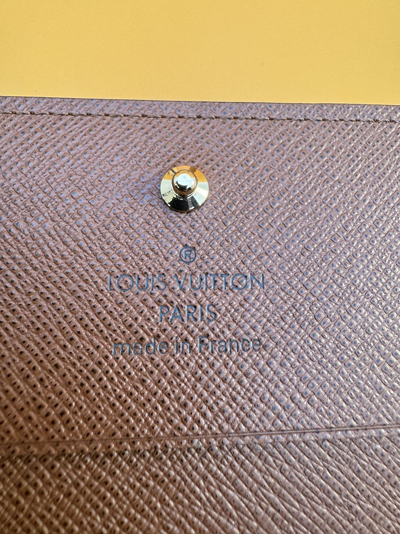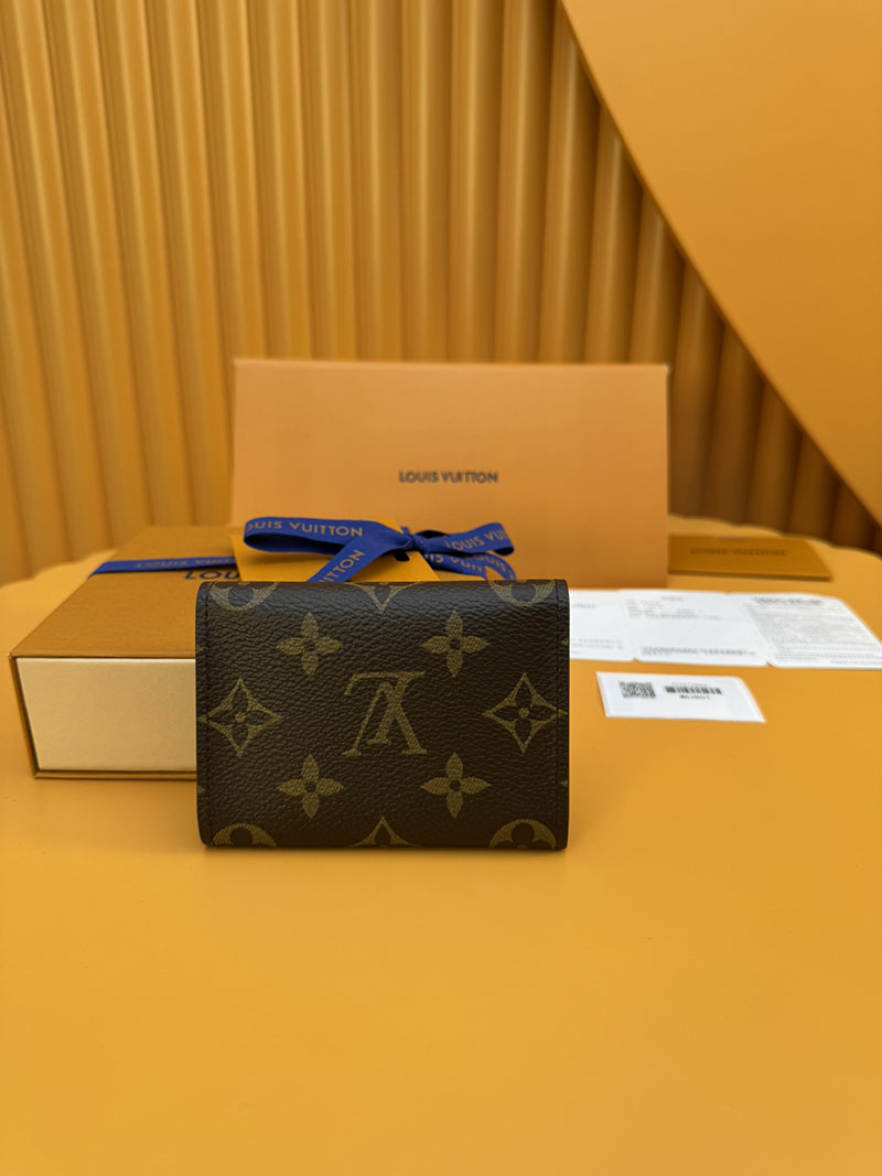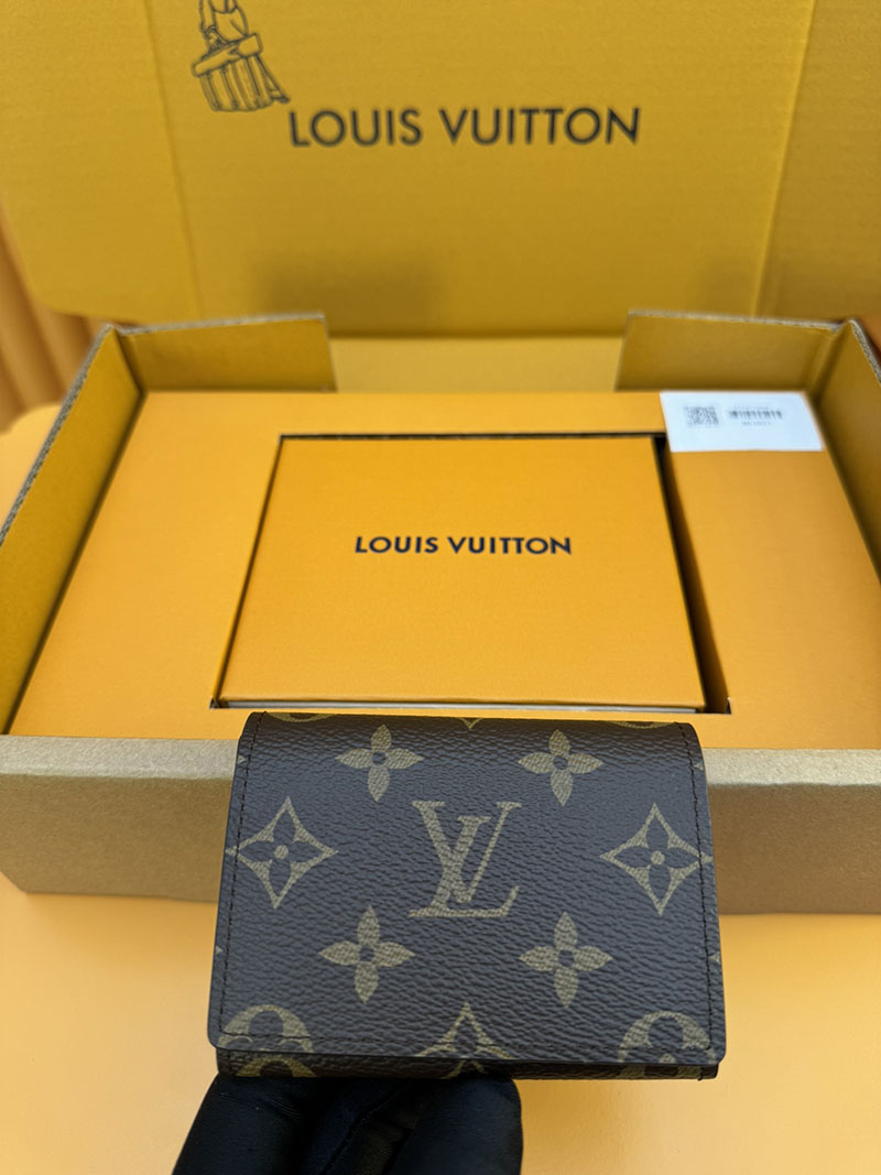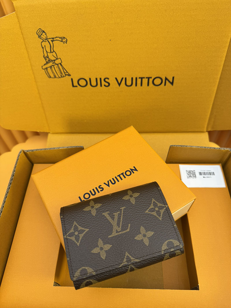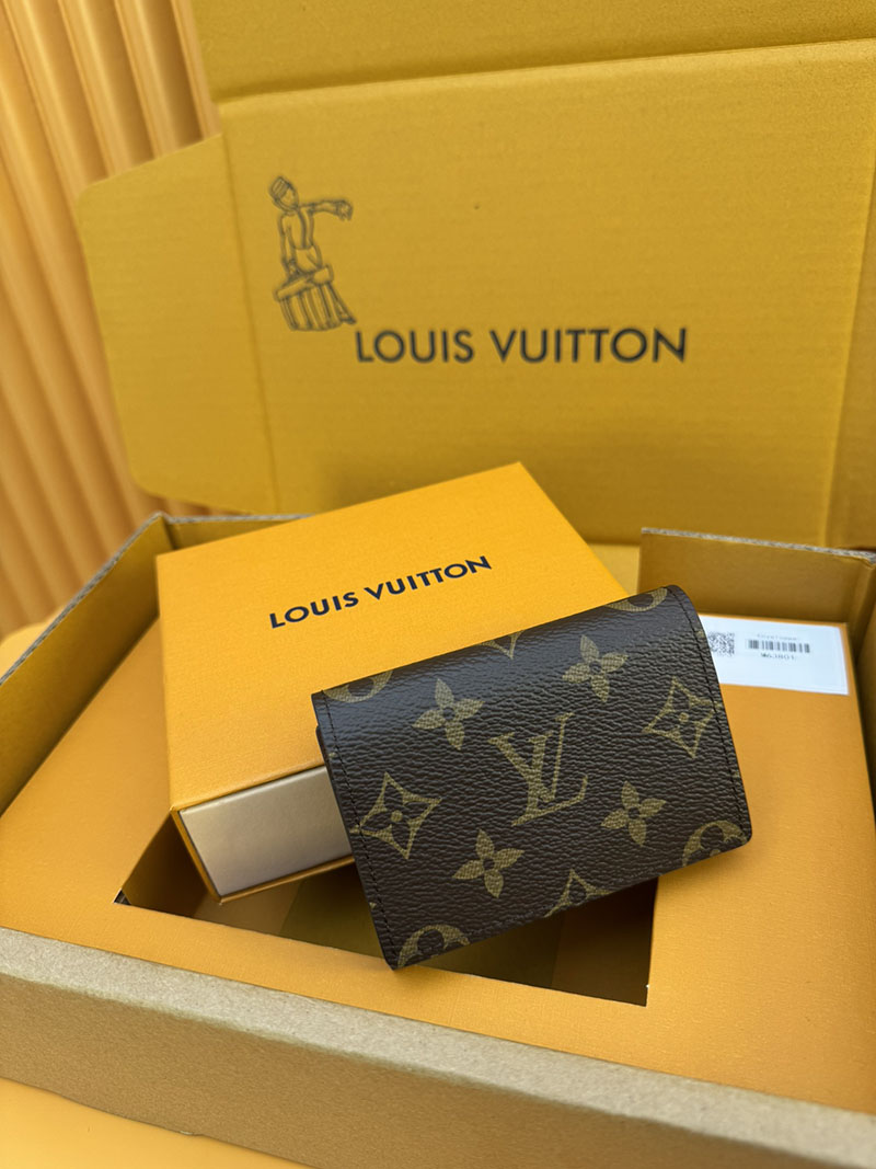 クラシカルなモノグラム・キャンバスの洗練されたカードケース「アンヴェロップ・カルト ドゥ ヴィジット」。あらゆるポケットにすっきり収まり、スナップ開閉式でクレジットカードなどを安全に持ち運ぶことができます。