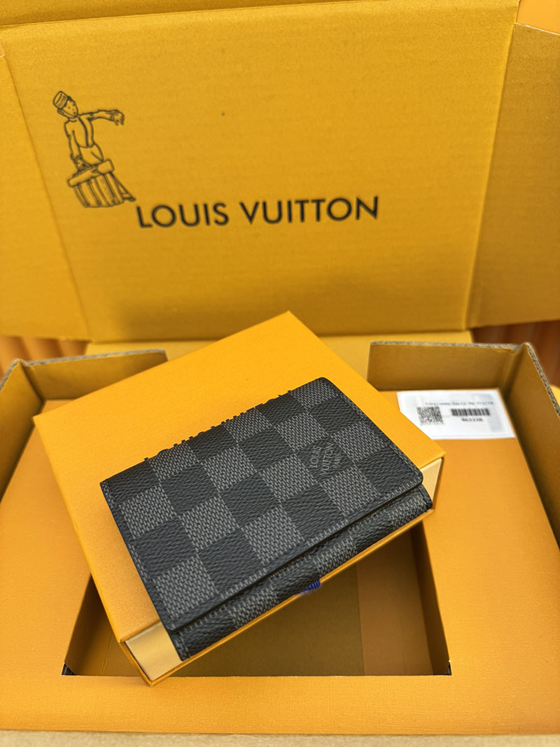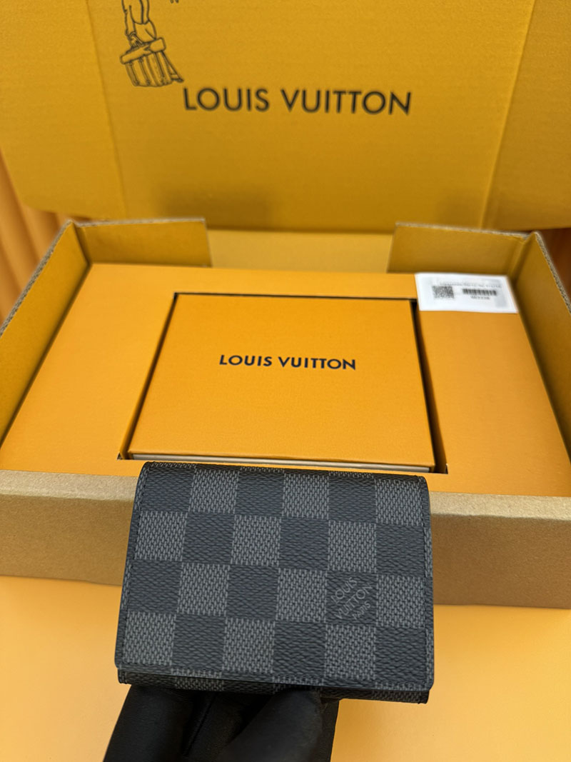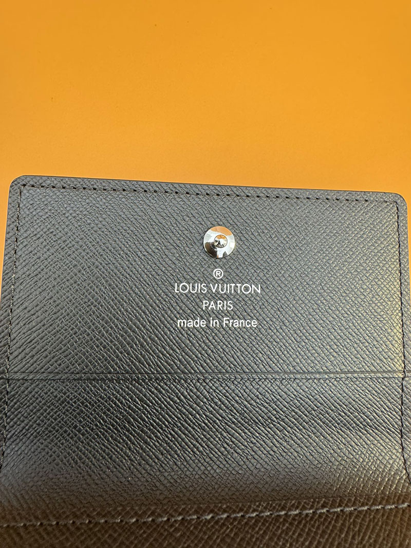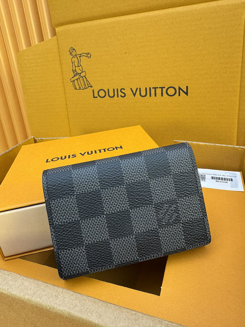 ダミエ・グラフィット キャンバスを使用したスリムで洗練された印象の「アンヴェロップ・カルト ドゥ ヴィジット」。あらゆるポケットやバッグにすっきり収まり、スナップ開閉式でクレジットカードなどを安全に持ち運ぶことができます。