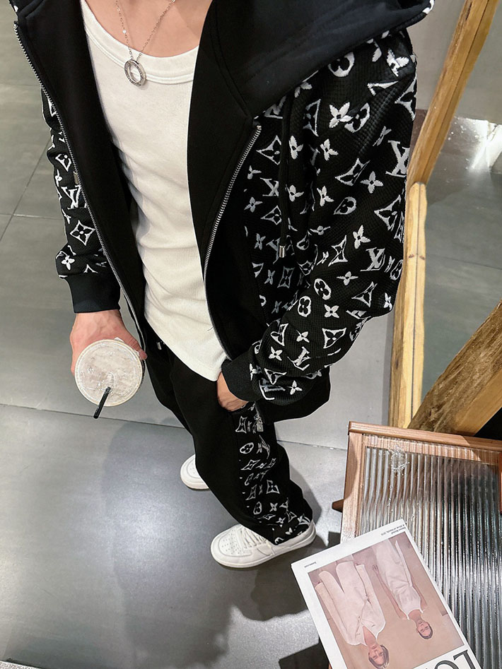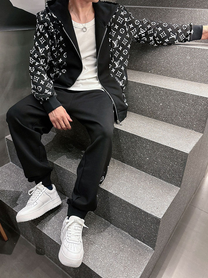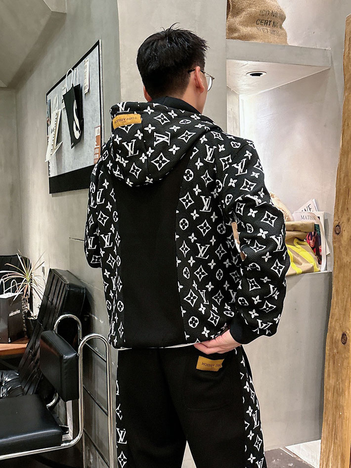 最高級ルイヴィトンスーパーコピー服 カジュアルセットアップ 上下セット ブラック 2524672 セットアップ メンズ おしゃれ
