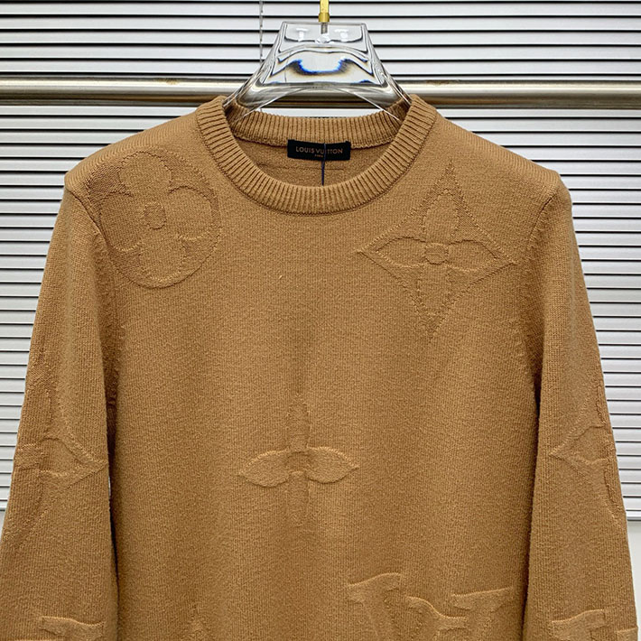 最高級ルイヴィトンスーパーコピー モノグラムロングスリーブコットンクルーネック ブラウン 2524732 ルイ ヴィトン ニット 新作