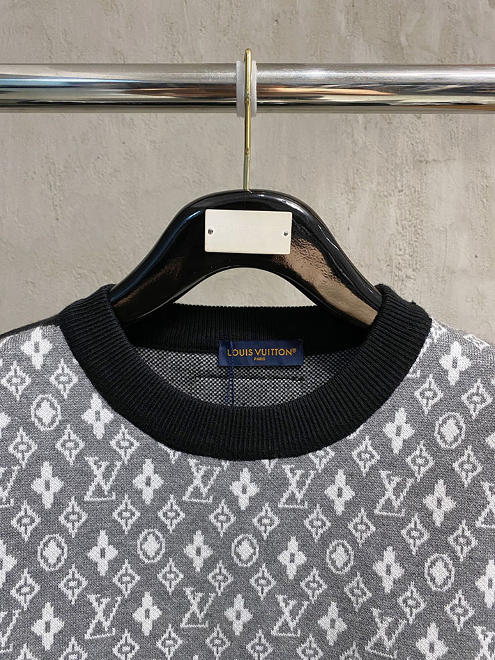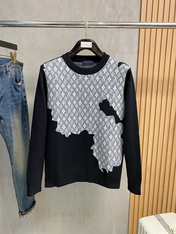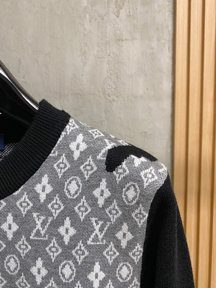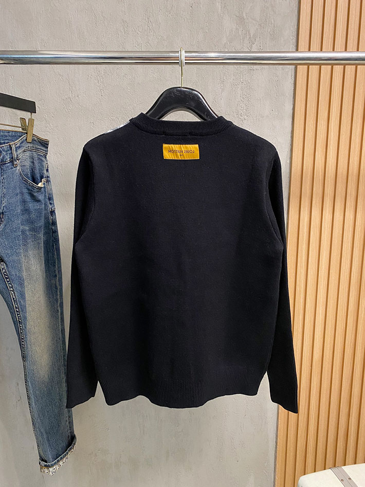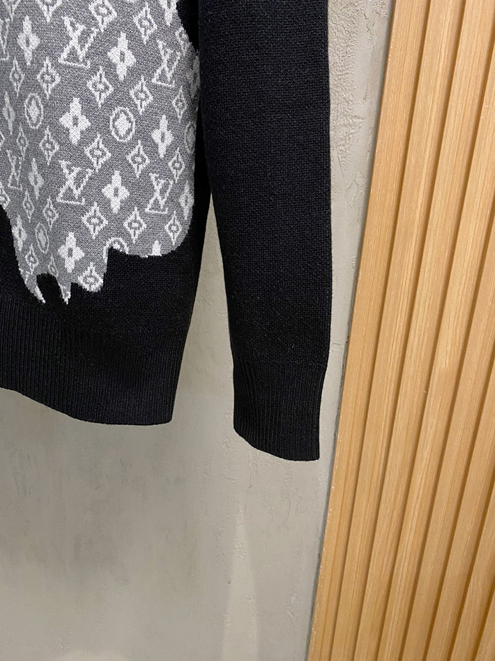 最高級ルイヴィトンスーパーコピー LV インターシャ クルーネック ニット ブラック 2525058 ルイヴィトン ニット 新作