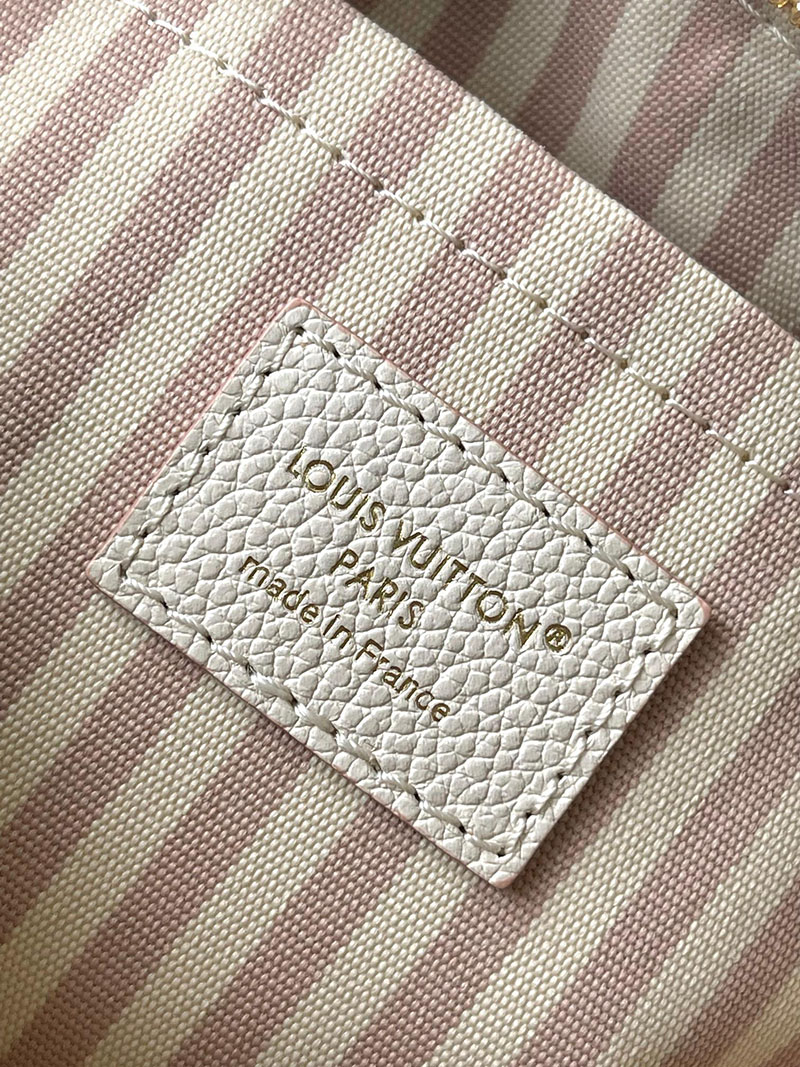 The House’s iconic Monogram Empreinte leather is reimagined for the season with a tonal outline, showcased on this chic edition of the Speedy Bandoulière 20. It opens to reveal a striped lining and is embellished with a signature gold-toned padlock and removable chain. Sized to store everyday essentials, it can be carried by hand or styled cross-body.