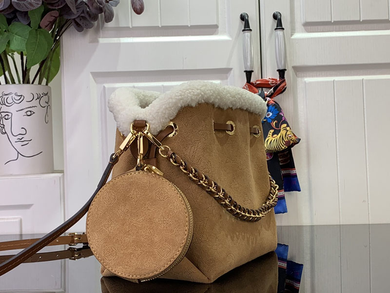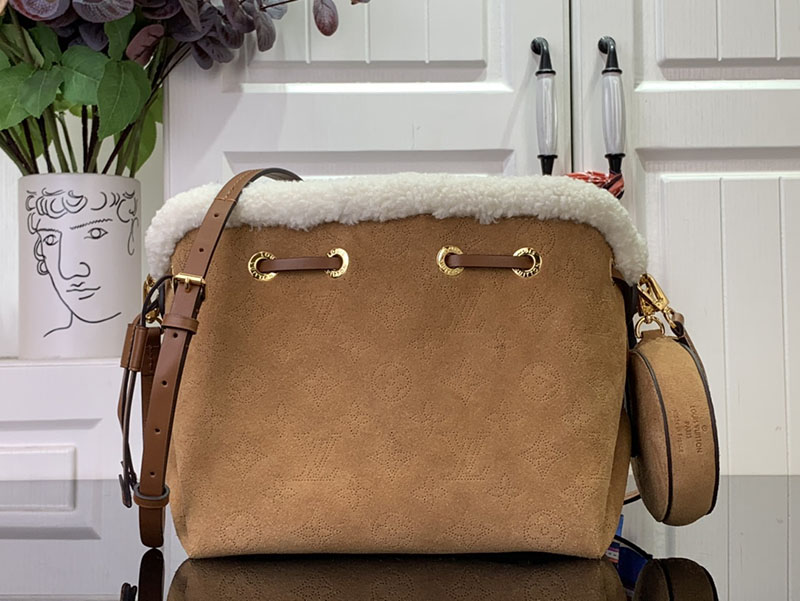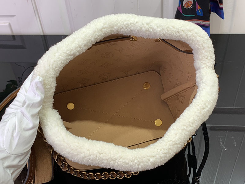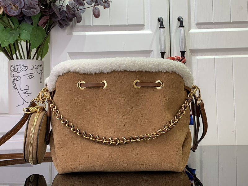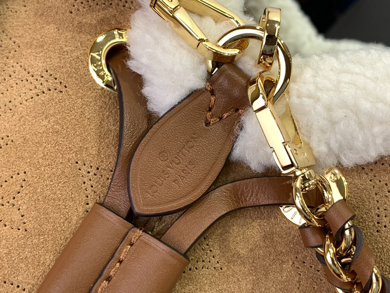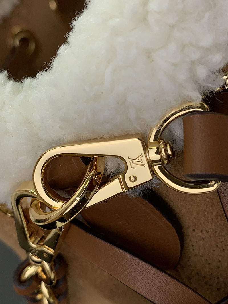 「LV SKI」コレクションの「ベラ」。今シーズンならではのラグジュアリーなマヒナ・スエードにメリノシアリングでトリミングを施し、手触りよく仕上げました。シグネチャーのモノグラムのパーフォレーションを、ゴールドカラーのチェーンの装飾が引き立てます。普段の必需品が収納できる洗練されたデザインも魅力。ラウンド型のコインパース付き。