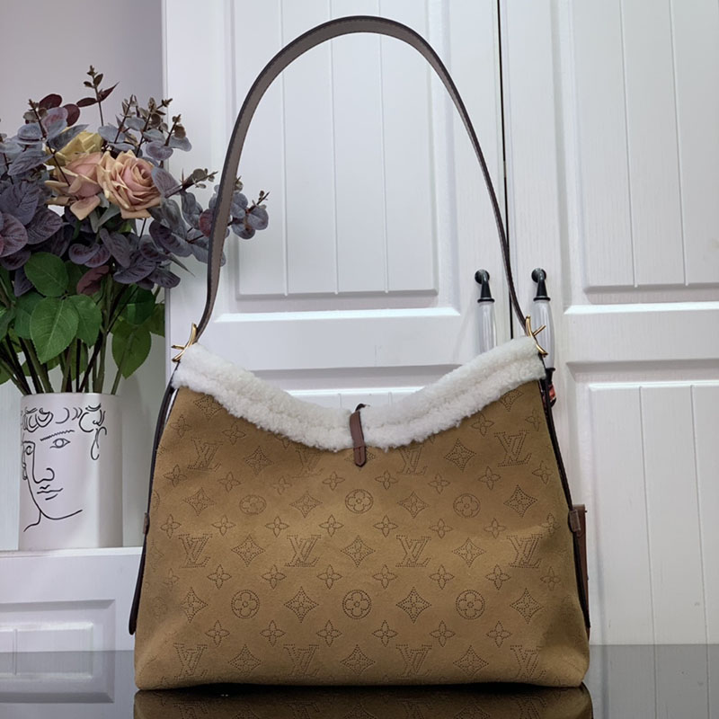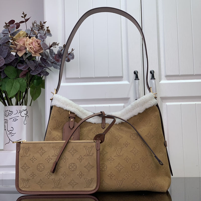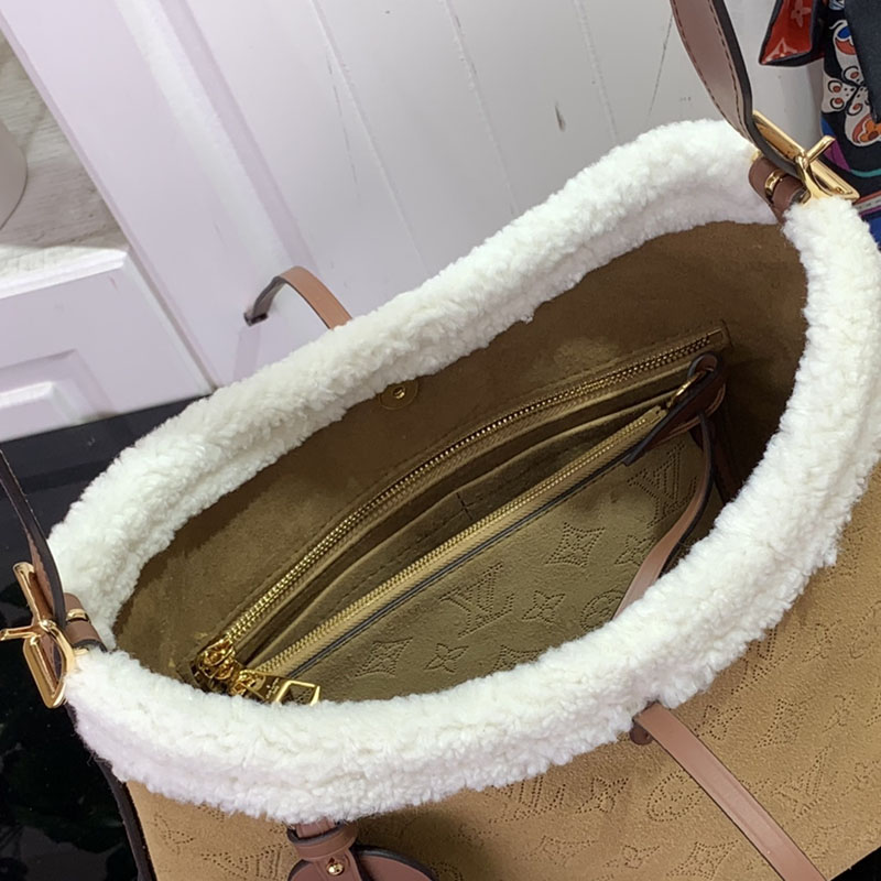 アイコニックなアイテムを冬にぴったりの暖かなスタイルとラグジュアリーな雰囲気にアップデートした「LV SKI」コレクションの「キャリーオール NM PM」。モノグラムのパーフォレーションで飾ったマヒナ・スエード レザーにメリノシアリングでトリミングを施し、手触りよく仕上げました。レザーのレースを添えたマグネット開閉式のたっぷりとしたデザインは、長財布や普段の必需品もしっかり収納できます。