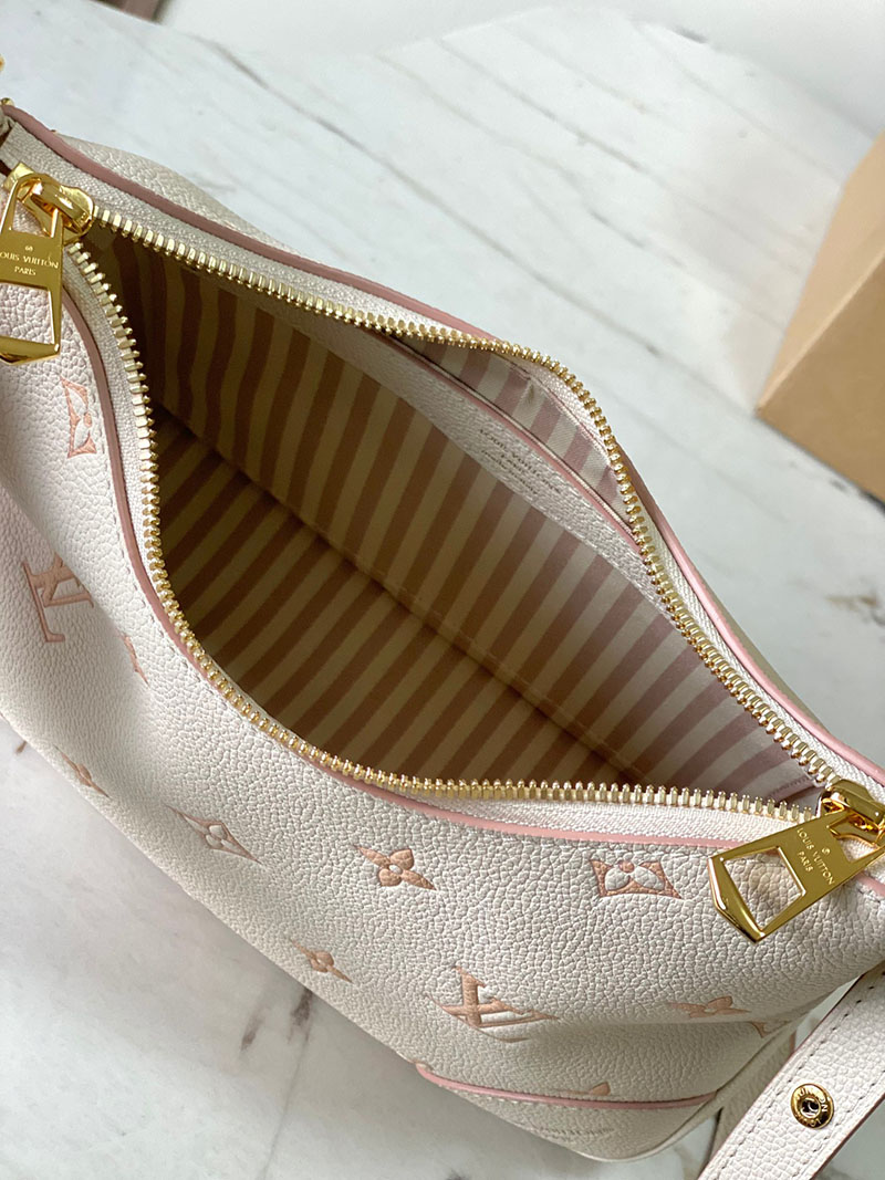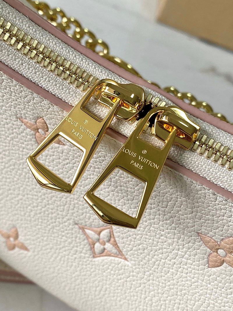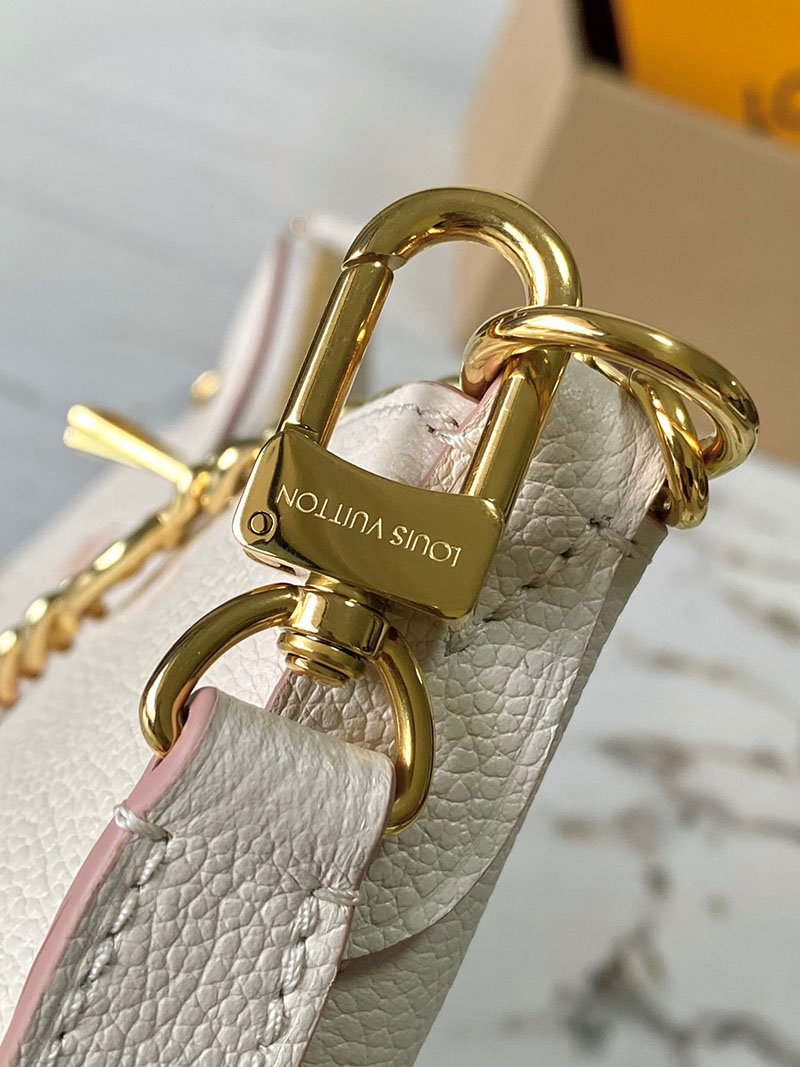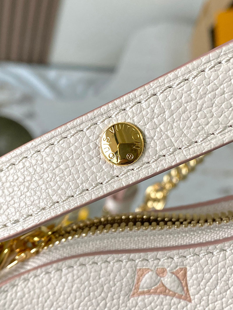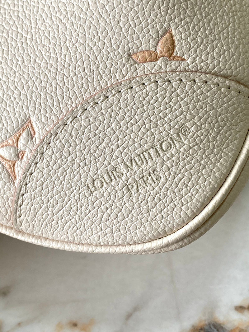 This edition of the Boulogne bag showcases the House’s signature Monogram Empreinte leather with an updated tonal outline. The versatile design offers multiple ways to wear and opens to reveal a flat pocket that’s sized to store a large smartphone. It is adorned with a removable chain embellished with LV Flower charms in an elegant gold-toned finish.