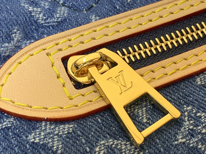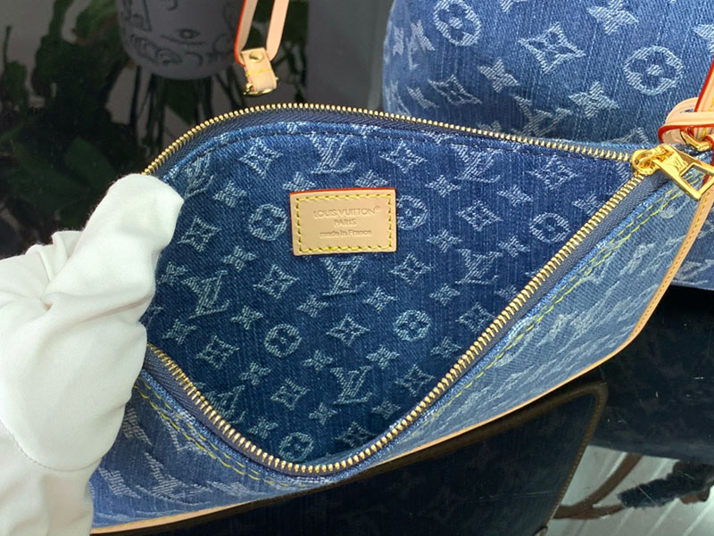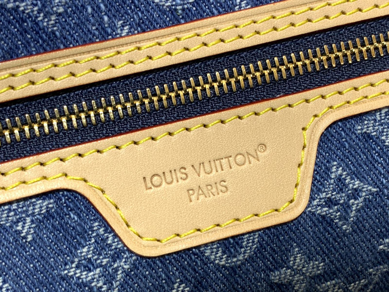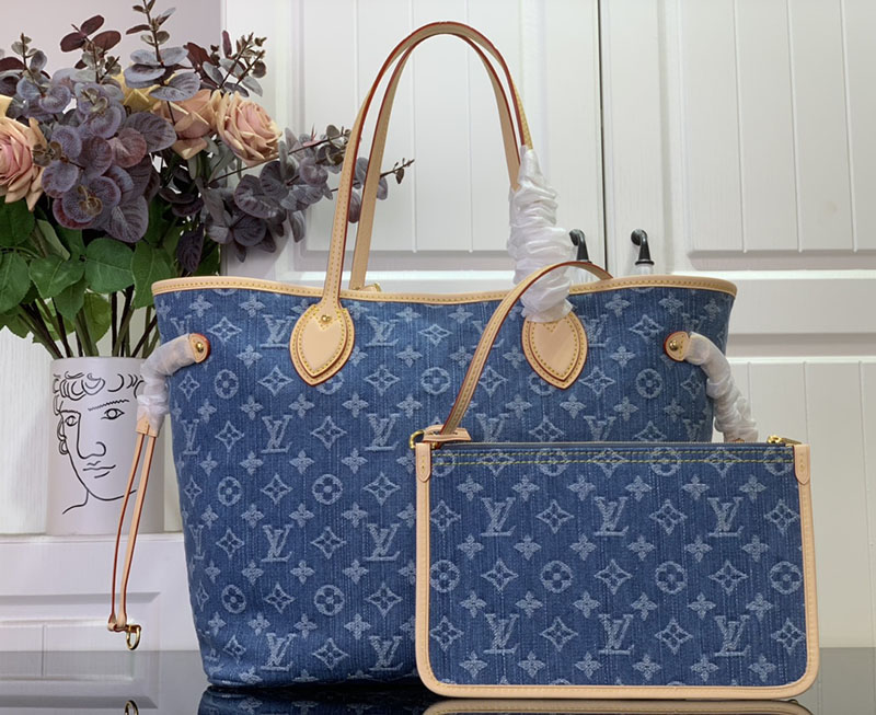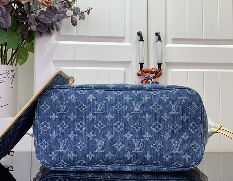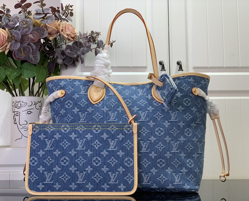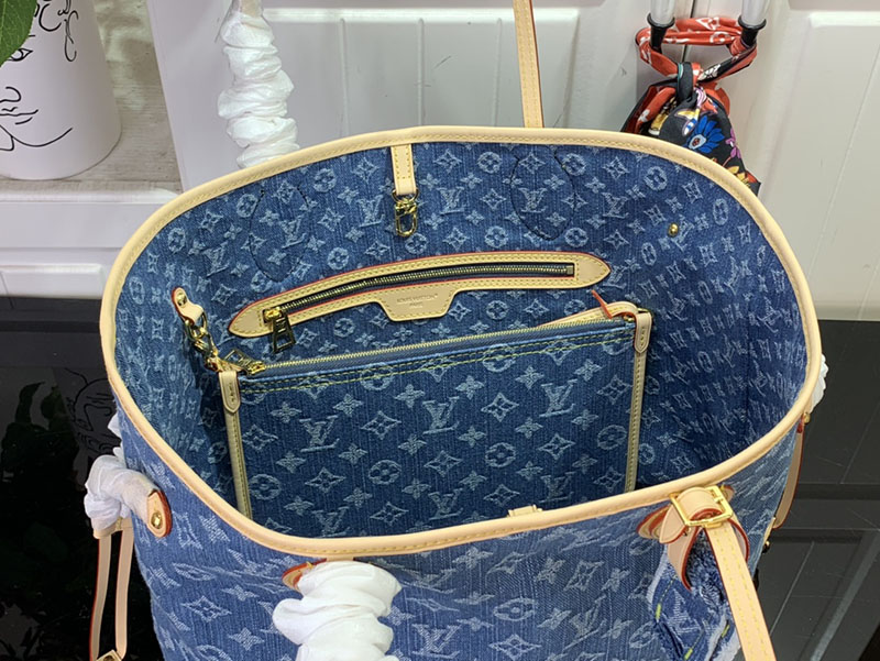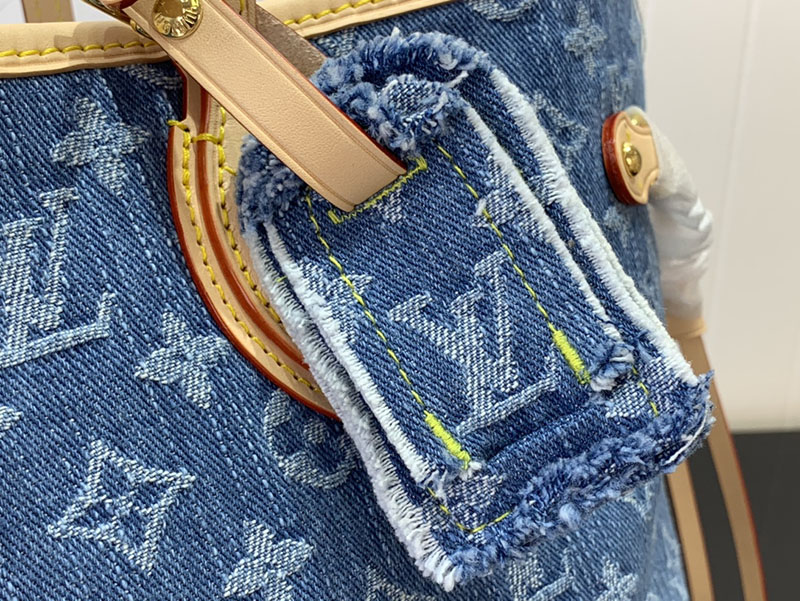 Ideal for city commutes and beyond, the iconic Neverfull MM tote is updated for the season in timeless Monogram denim. Detailed with signature natural cowhide leather trimmings, it has adjustable side laces to cinch the silhouette, which is generously sized to store a 13” laptop. The interior is fitted with multiple pockets, including a removable zipped pouch.