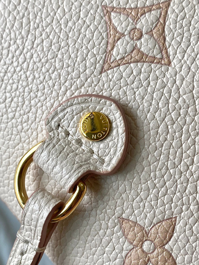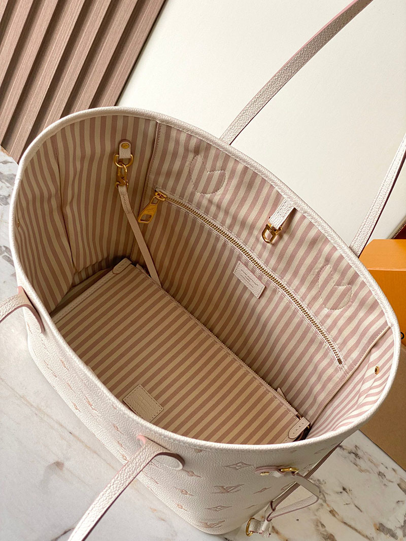 機能的かつ洗練された印象の「ネヴァーフル MM」。今シーズンならではのシックな同系色で表現したメゾンのアイコニックなモノグラム・アンプラント レザーを使用しています。ノートパソコンに加えてその他のデイリーアイテムも収納できるたっぷりとしたバッグには、コントラストのあるプリントを施した取外し可能なテキスタイル製のポーチ付き。ゴールドカラーの金具で上品に仕上げました。