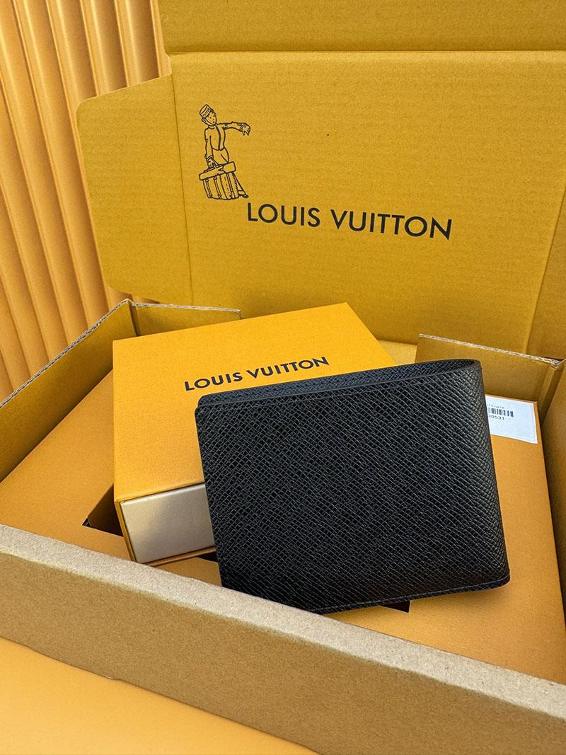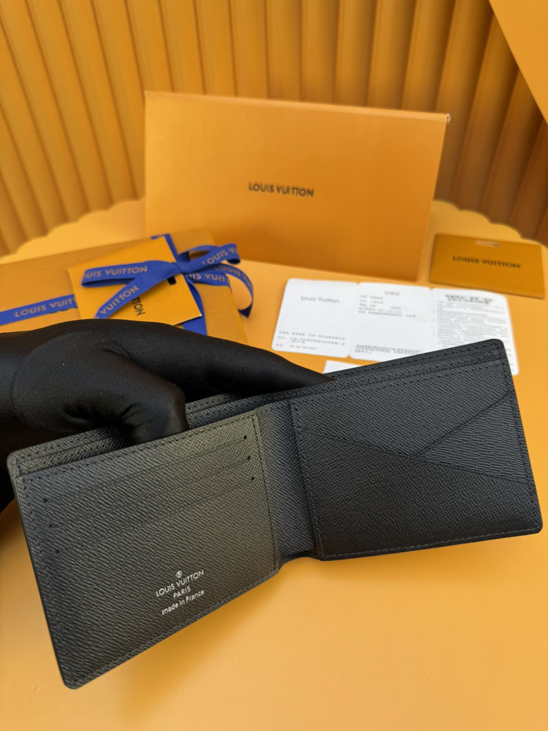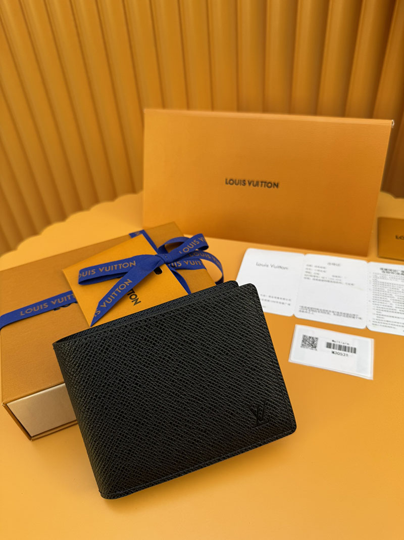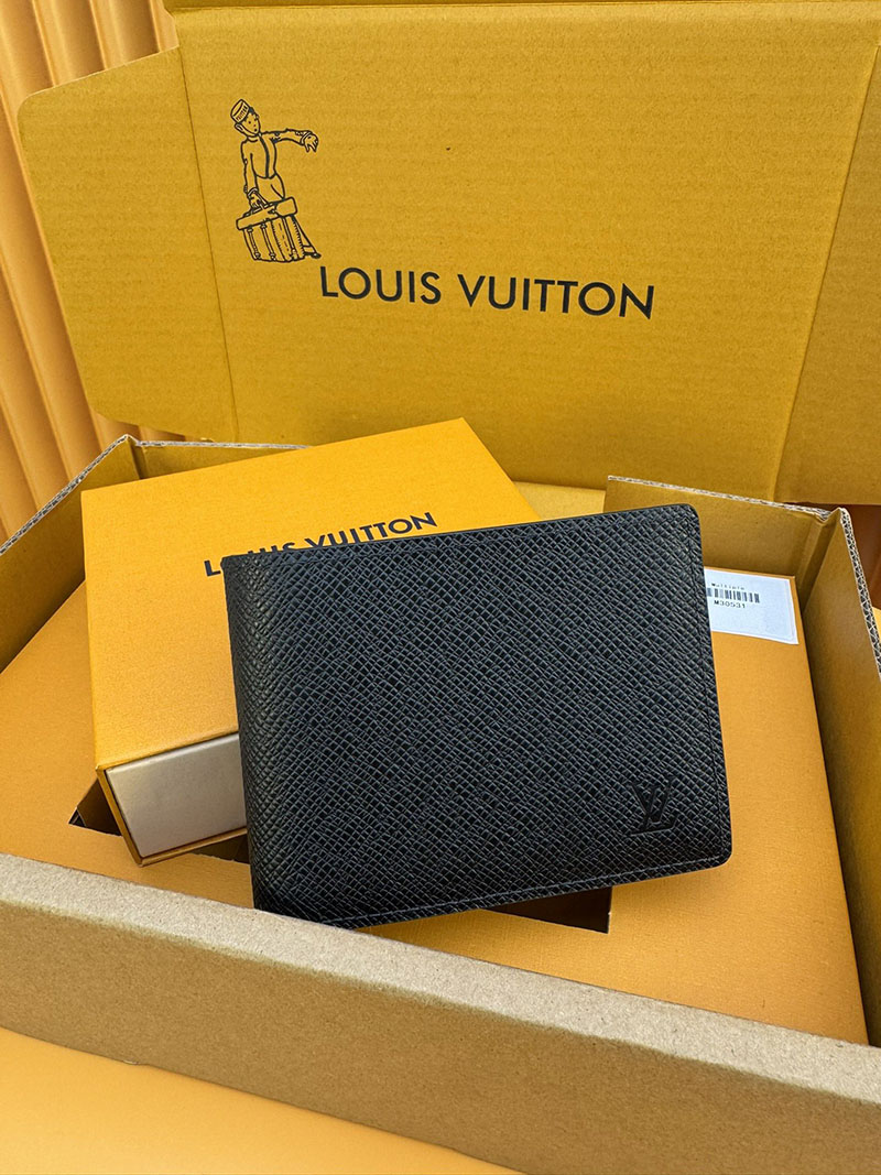 並行輸入品 ルイヴィトン ポルトフォイユ・ミュルティプル M30531 RFID タイガ・レザー ブラック 財布 メンズ 二つ折り 小銭入れあり