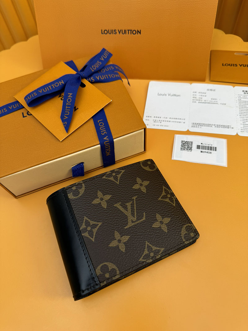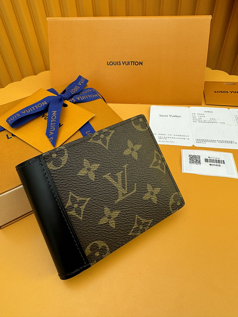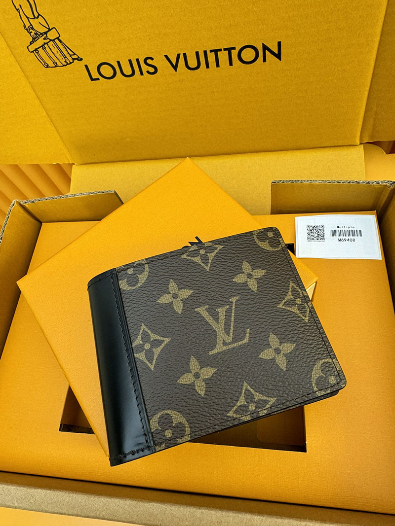 並行輸入品 ルイヴィトン ポルトフォイユ・ミュルティプル M69408 RFID モノグラム ブラウン/ブラック 財布 メンズ 二つ折り 小銭入れあり