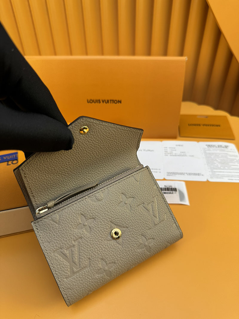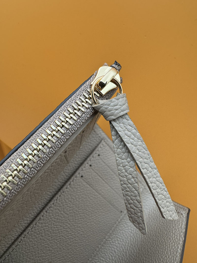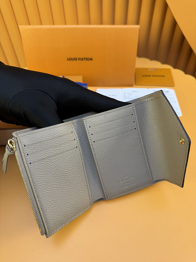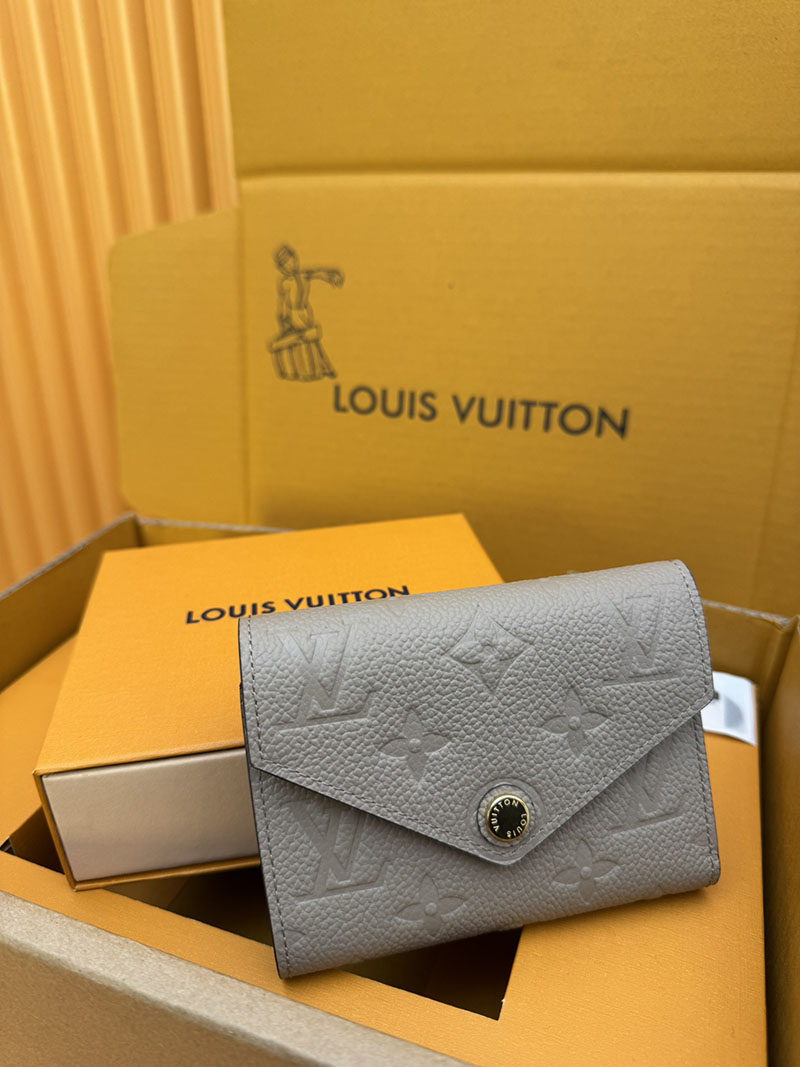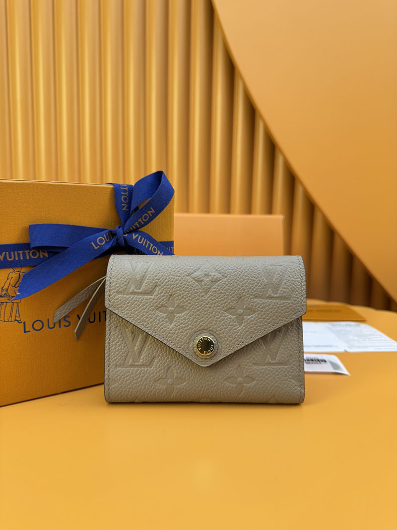 エンヴェロップ型の財布「ポルトフォイユ・ヴィクトリーヌ」。アイコニックなモノグラム・パターンをエンボス加工で施した、しなやかなモノグラム・アンプラント レザーを使用しました。カード用スロットと紙幣用ポケット、サイドのファスナー付きコイン用コンパートメントを備えています。この上なく機能的なデザインが光るコンパクトでフェミニンなアイテムです。