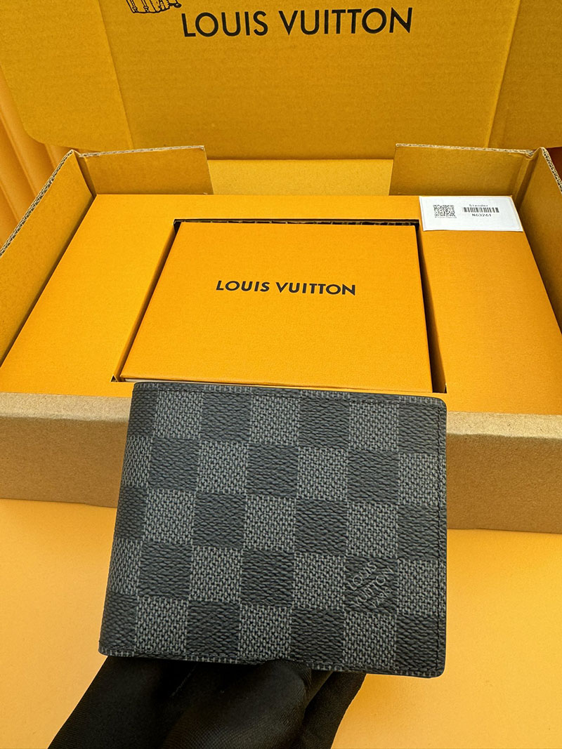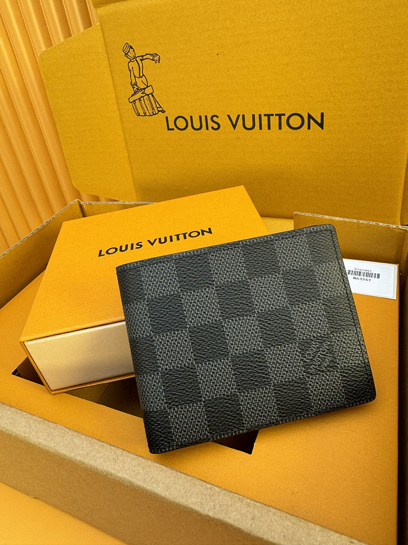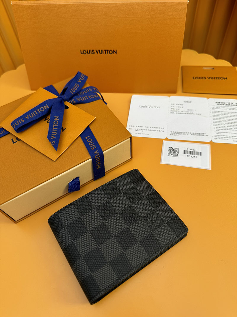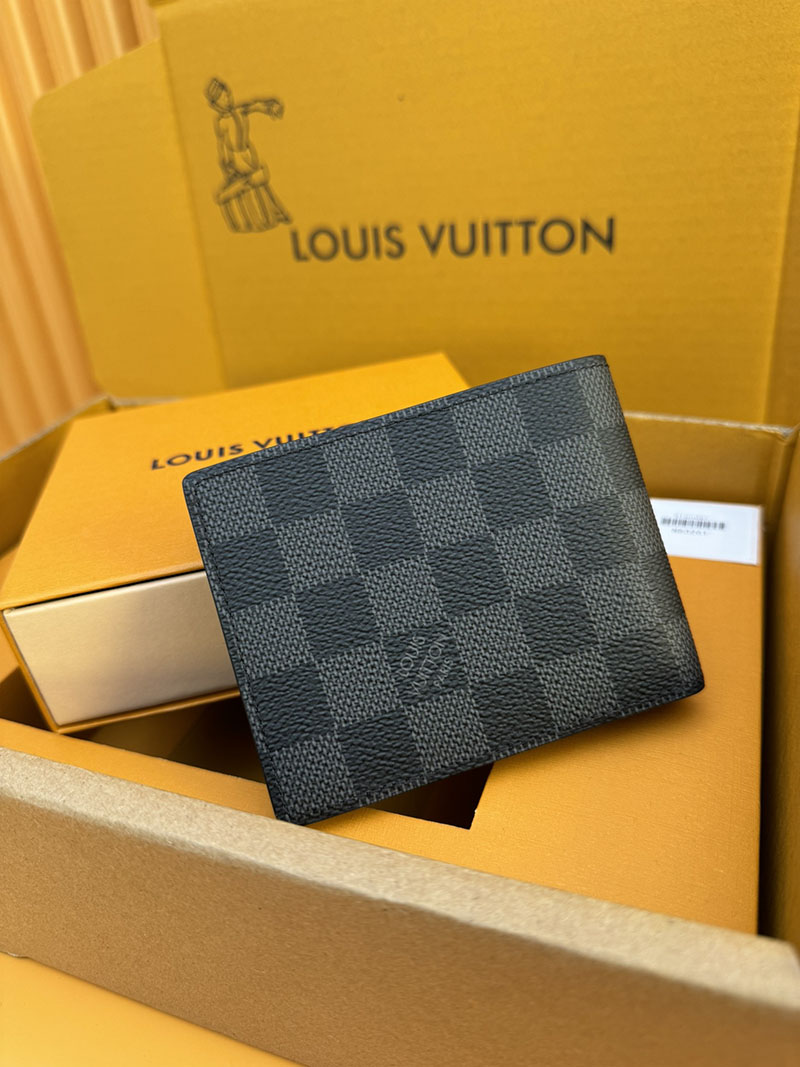 「スレンダー」の名の通りスリムなデザイン。マスキュリンなダミエ・グラフィット・キャンバスの財布はその名に相応しく、コンパクトですっきりした作りが特徴で、必需品をすべて収納しても前ポケットや後ろポケットに簡単に収まります。