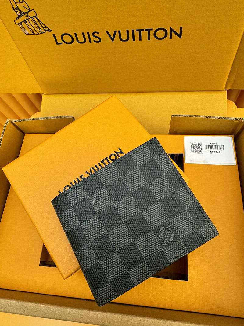 アイコニックなダミエ・グラフィット キャンバスを使用した財布「ポルトフォイユ・マルコ NM」は、ポケットにすっきり収まる機能的なスクウェア型で、カードや紙幣、コインなどをスマートかつエレガントに携帯することができます。